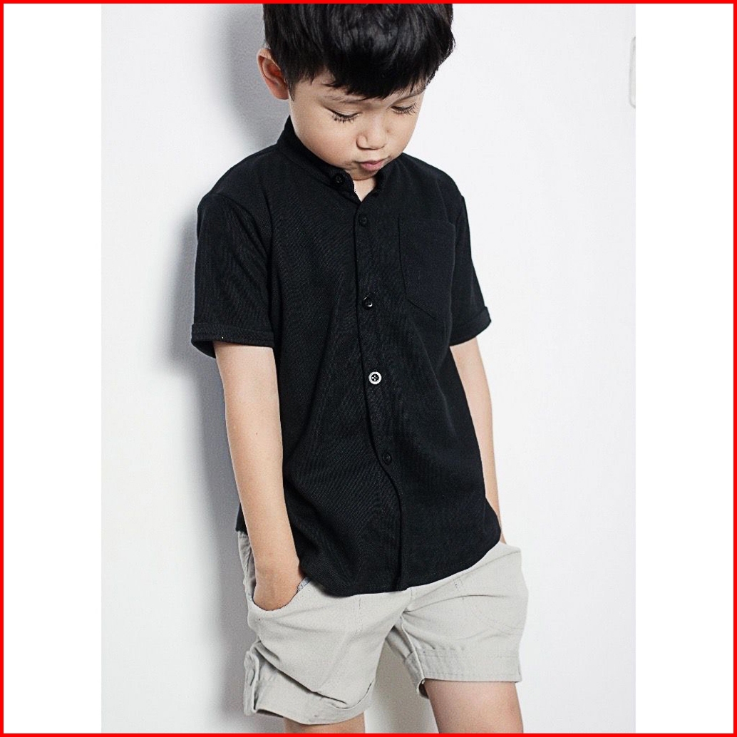 Kemeja Anak Laki Laki Usia 1-12 Tahun Polos Lengan Pendek Import Premium Terbaru