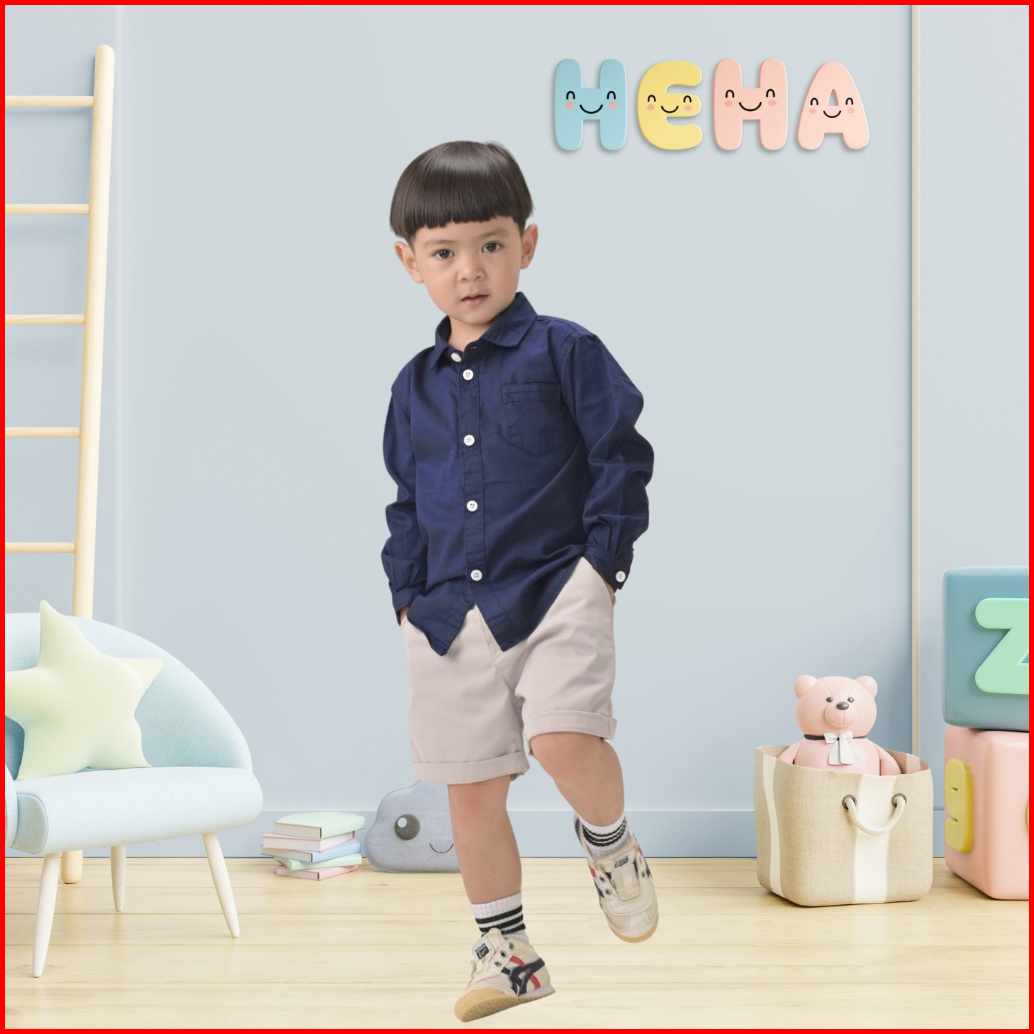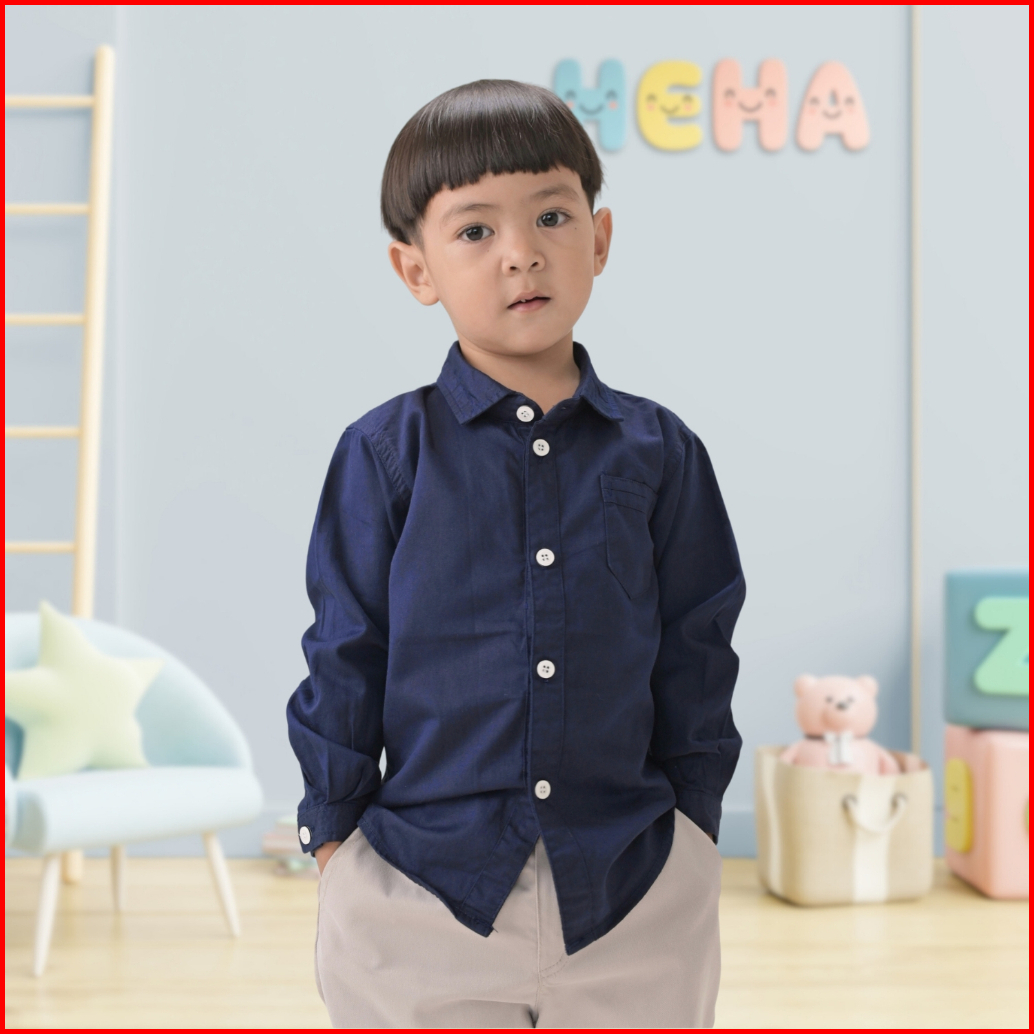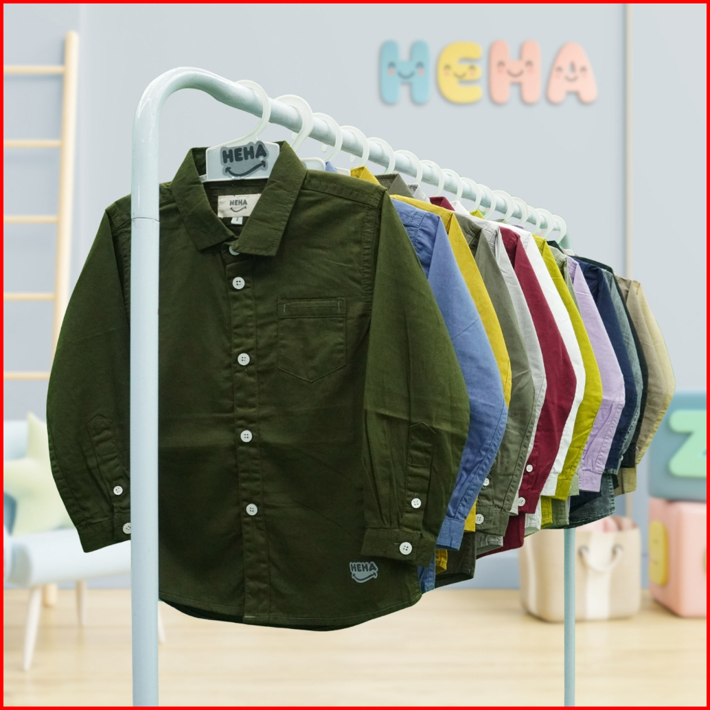 Heha - Nobi Kemeja Polos Anak Laki-laki Lengan Panjang Material Full Katun