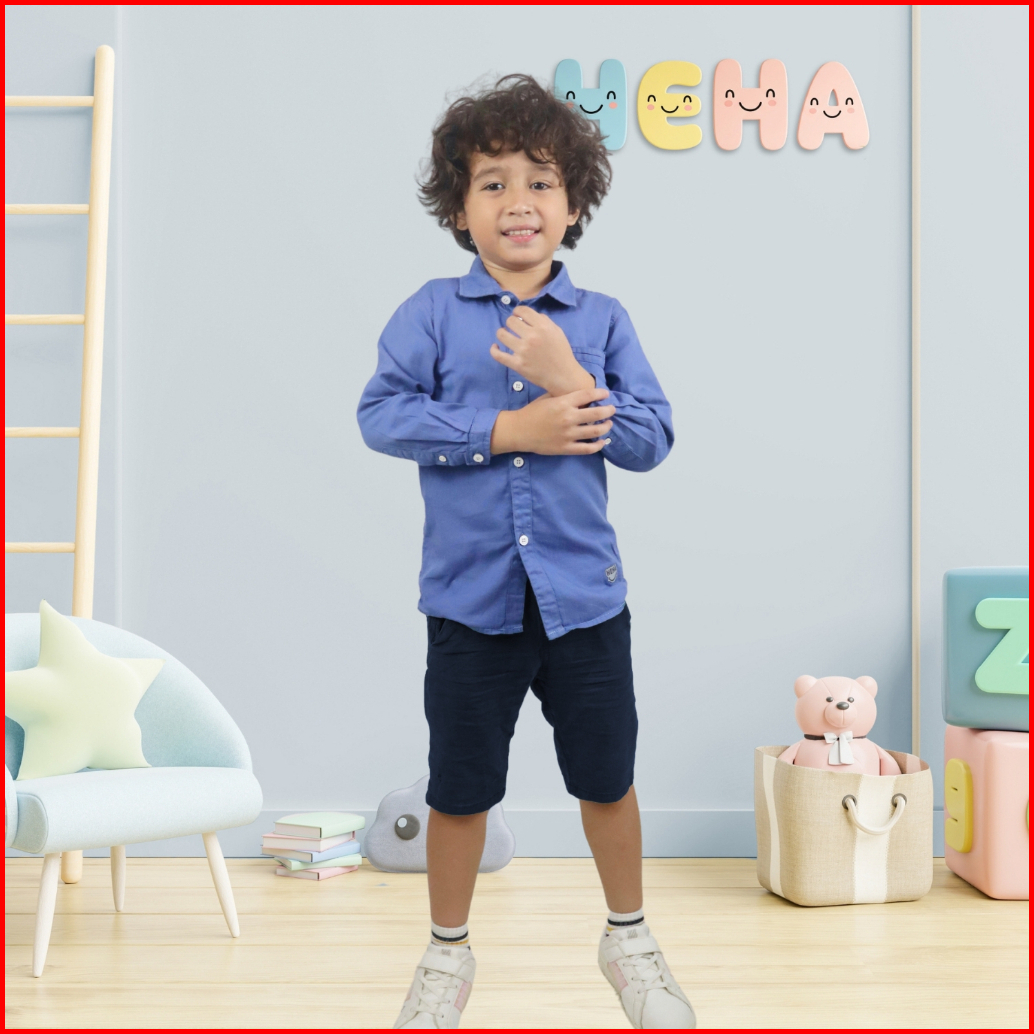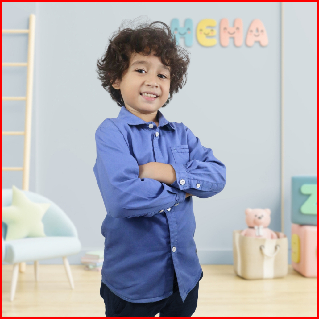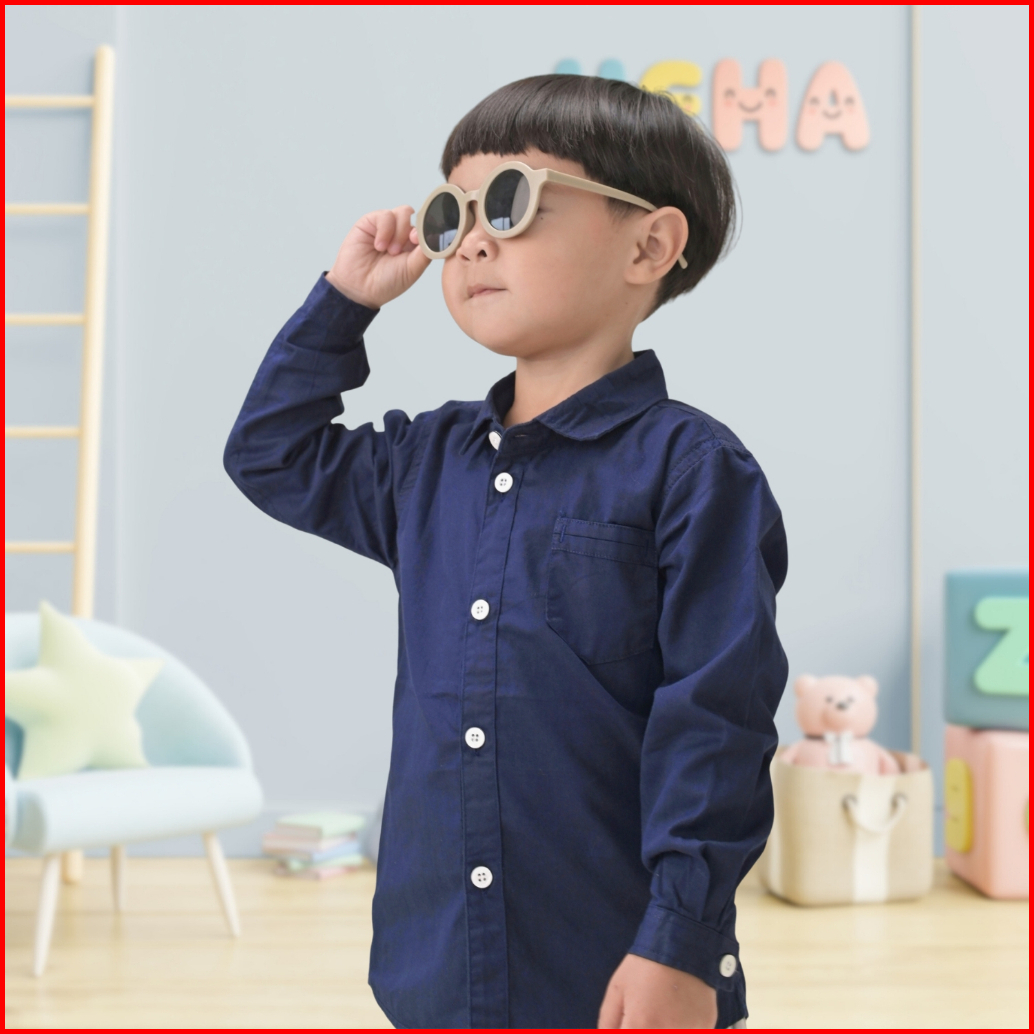 Heha - Nobi Kemeja Polos Anak Laki-laki Lengan Panjang Material Full Katun