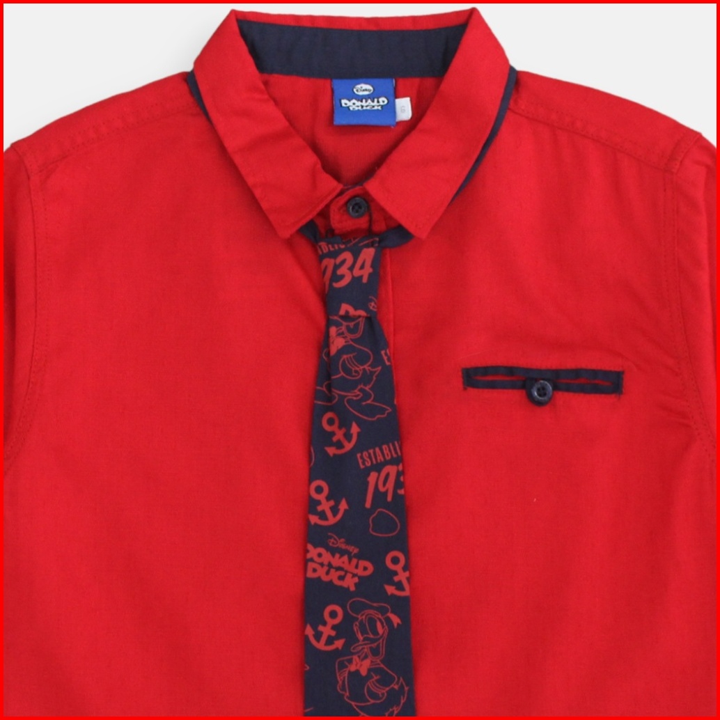 Shirt Kemeja Anak Laki Donald Duck Look Style Red Dobby
