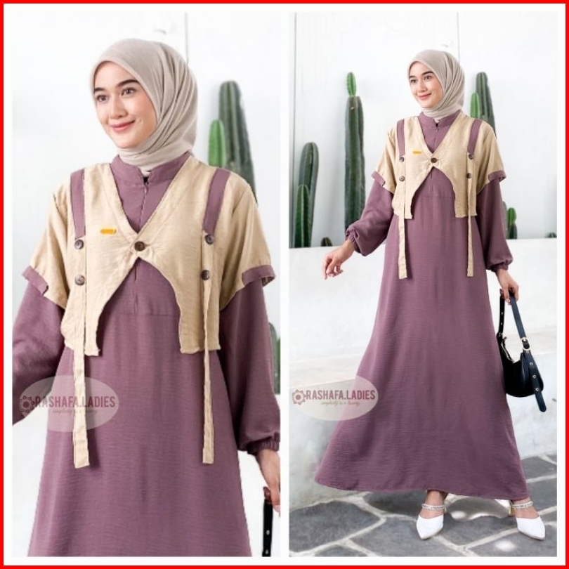 Ready Hilma Dress Vest Rompi Pololinen 2 Set Gamis With Outer
