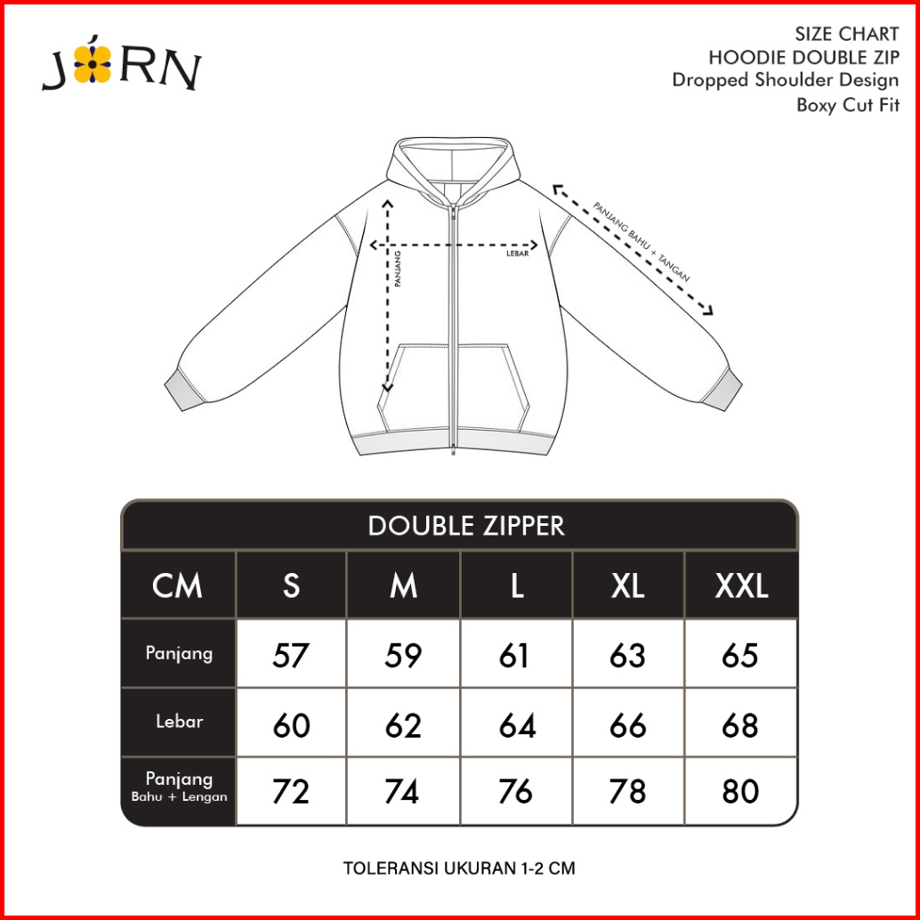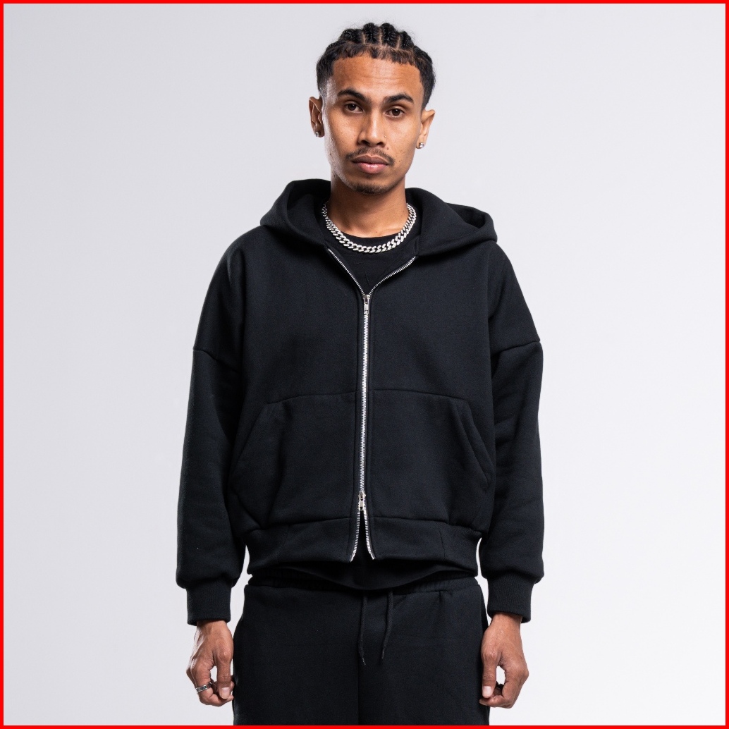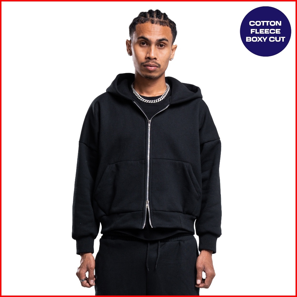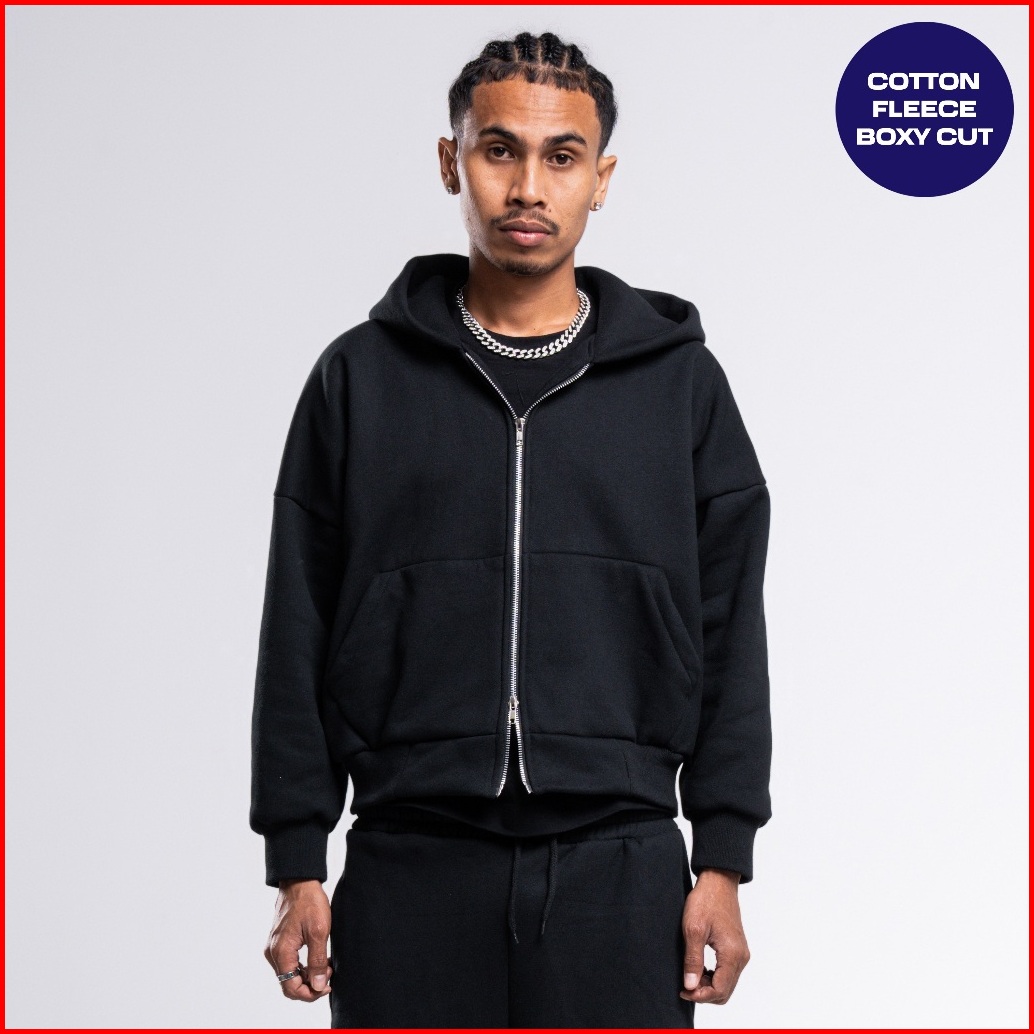 Jorn - Boxy Double Zip Hitam Zipper Hoodie Boxy Zipper Boxy Zipper Boxy 375gsm Zipper Heavyweight Hoodie Tebal Uniseks