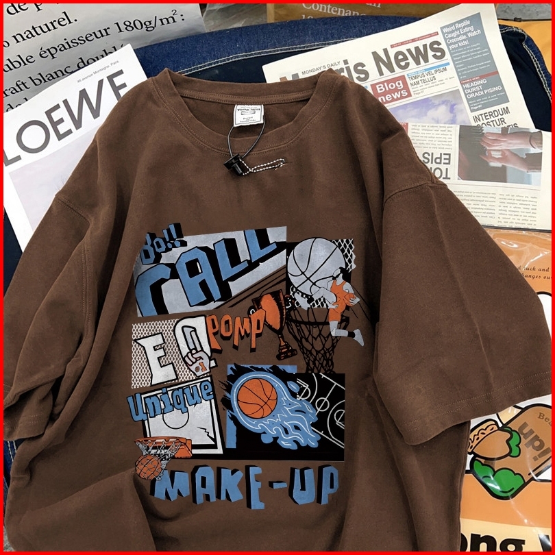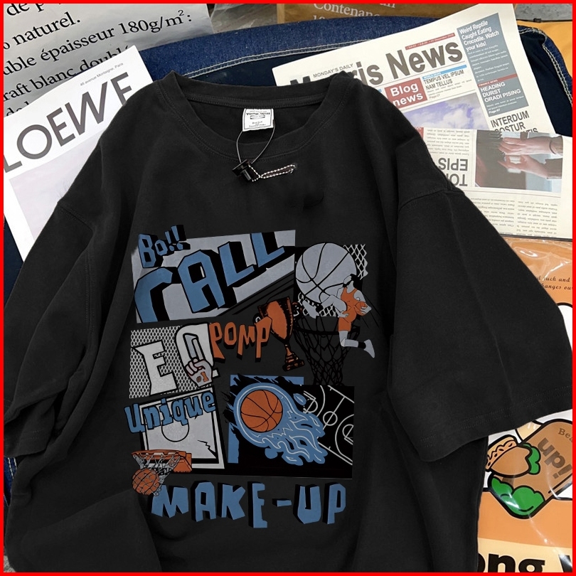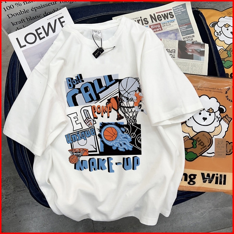 Fastfash Baju Kaos Pria Dan Wanita Lengan Pendek Oversize Vintage Cartoon Hot Blood Basketball Bergaya Netral T Shirt Pr