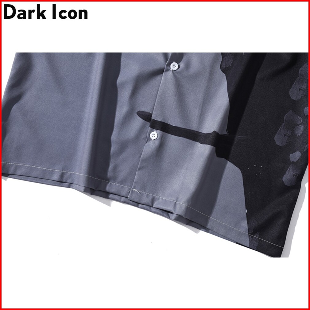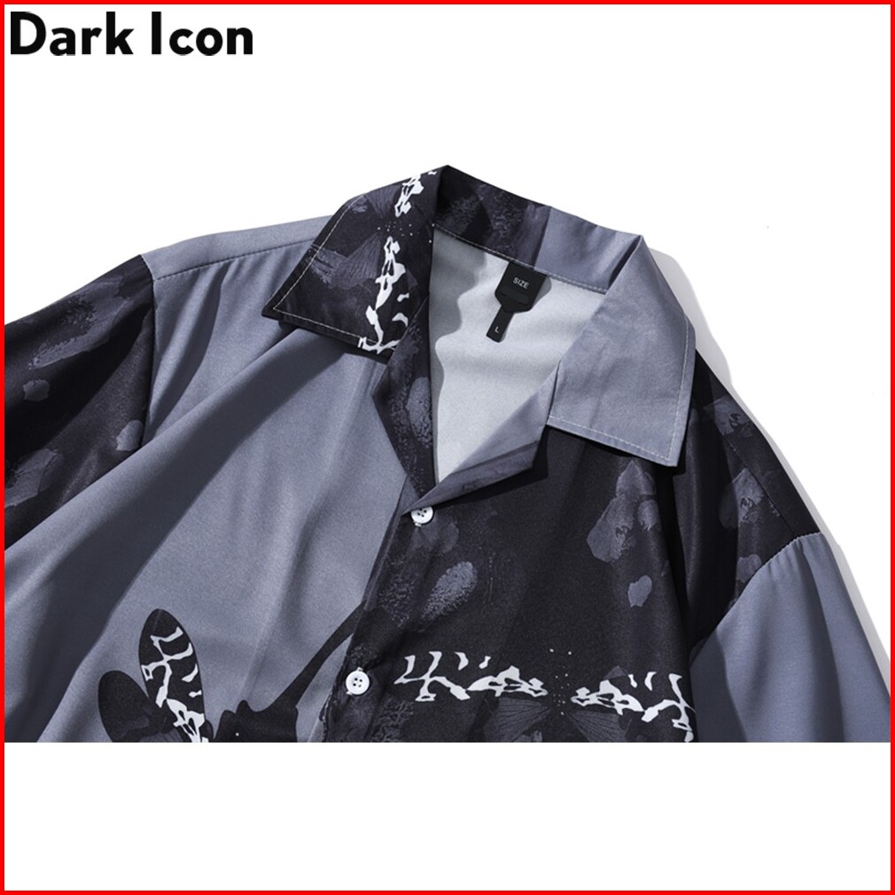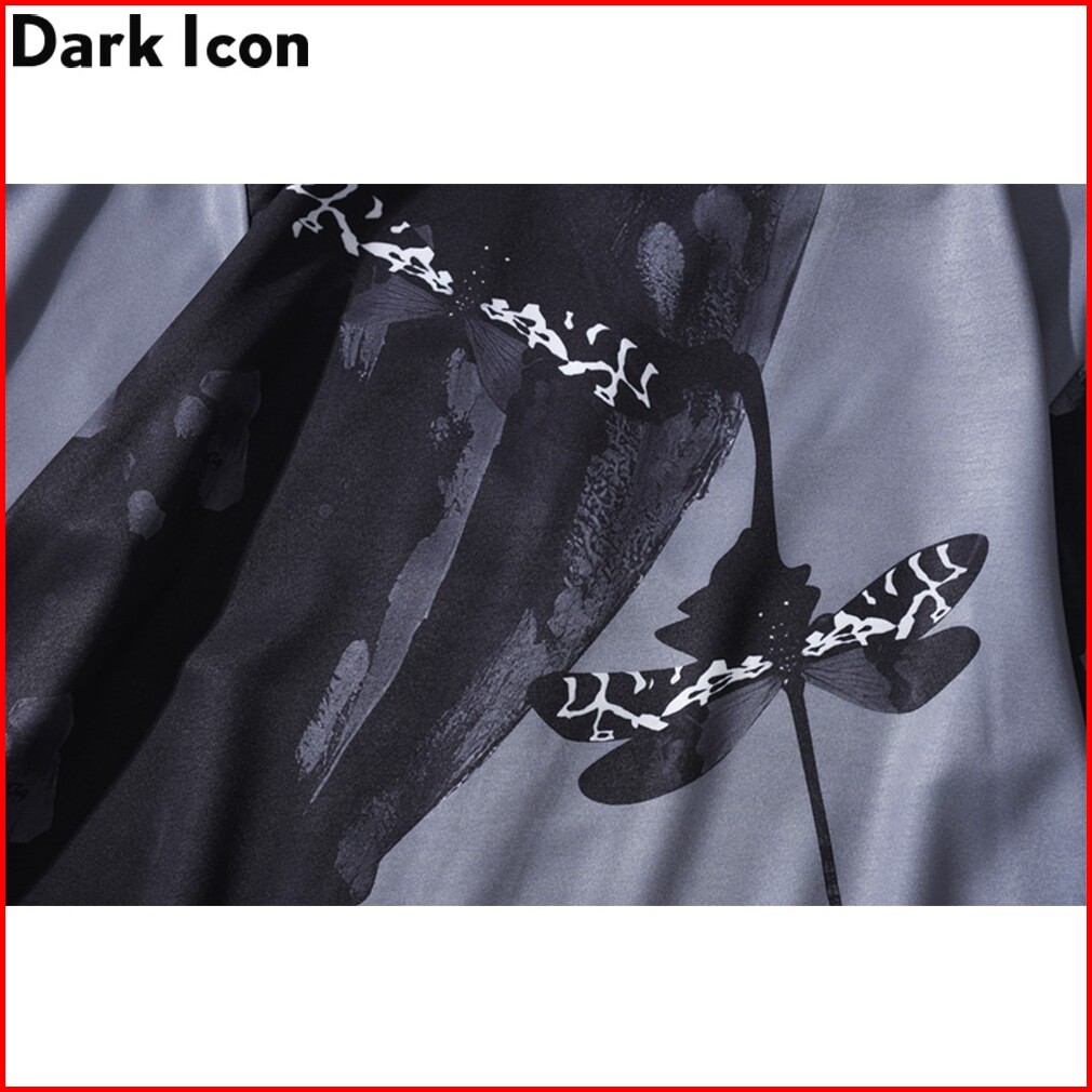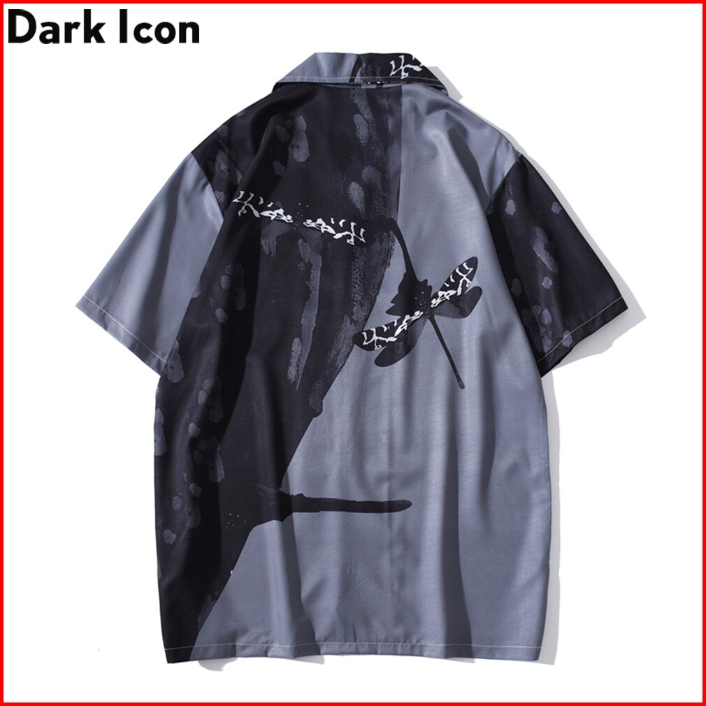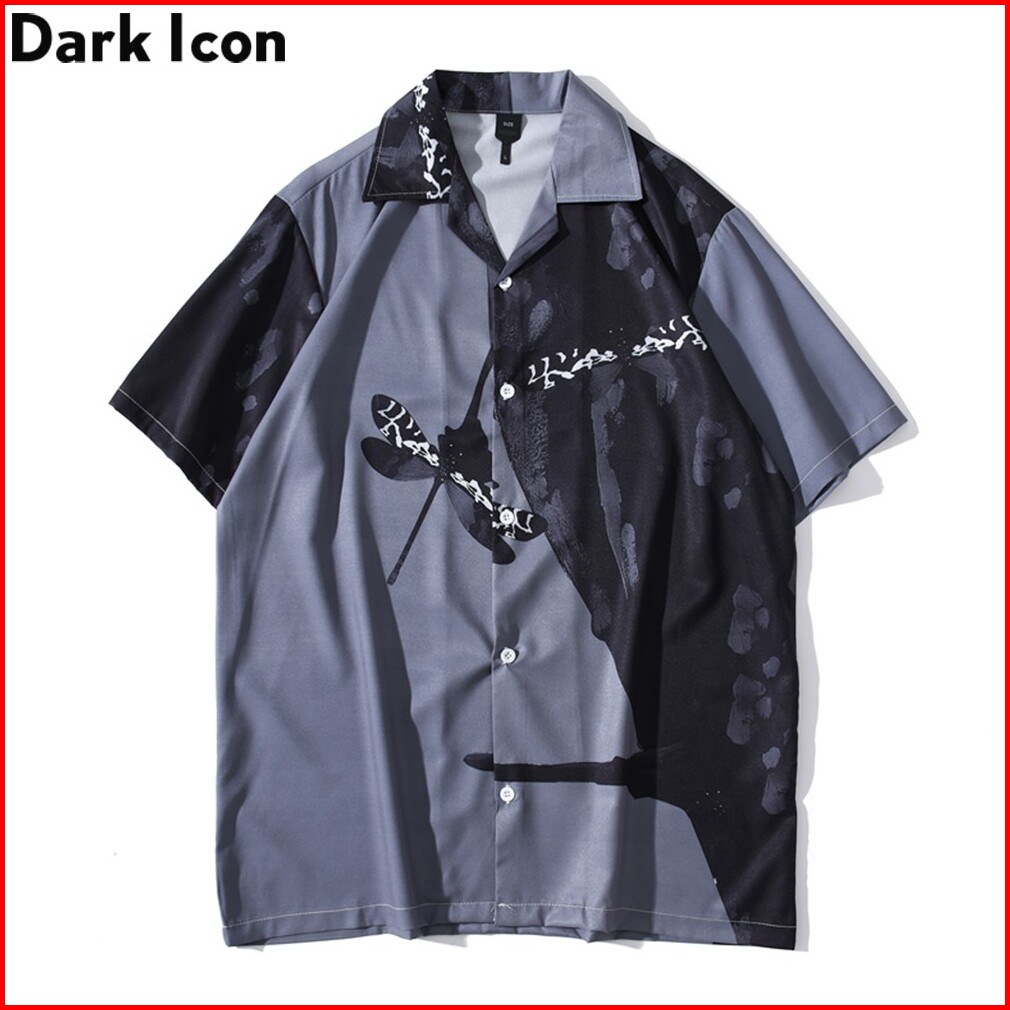 Dark Icon Kemeja Lengan Pendek Casual Motif Print Capung Gaya Hawaii Warna Hitam Untuk Pria