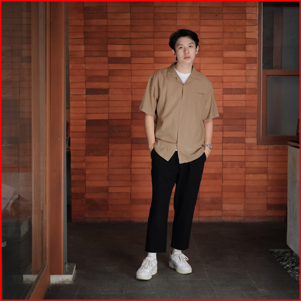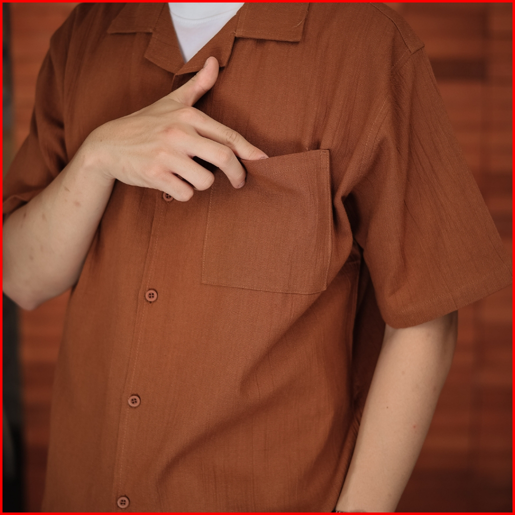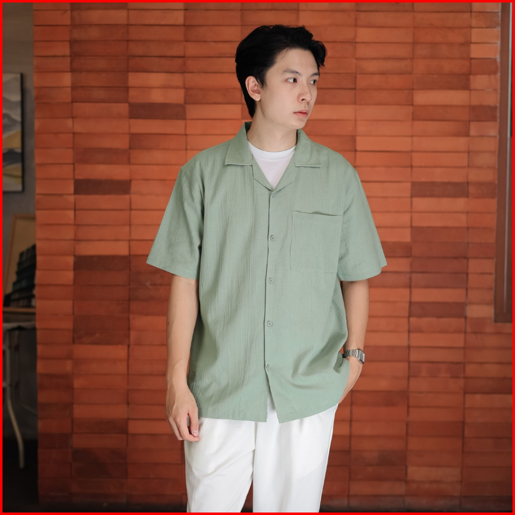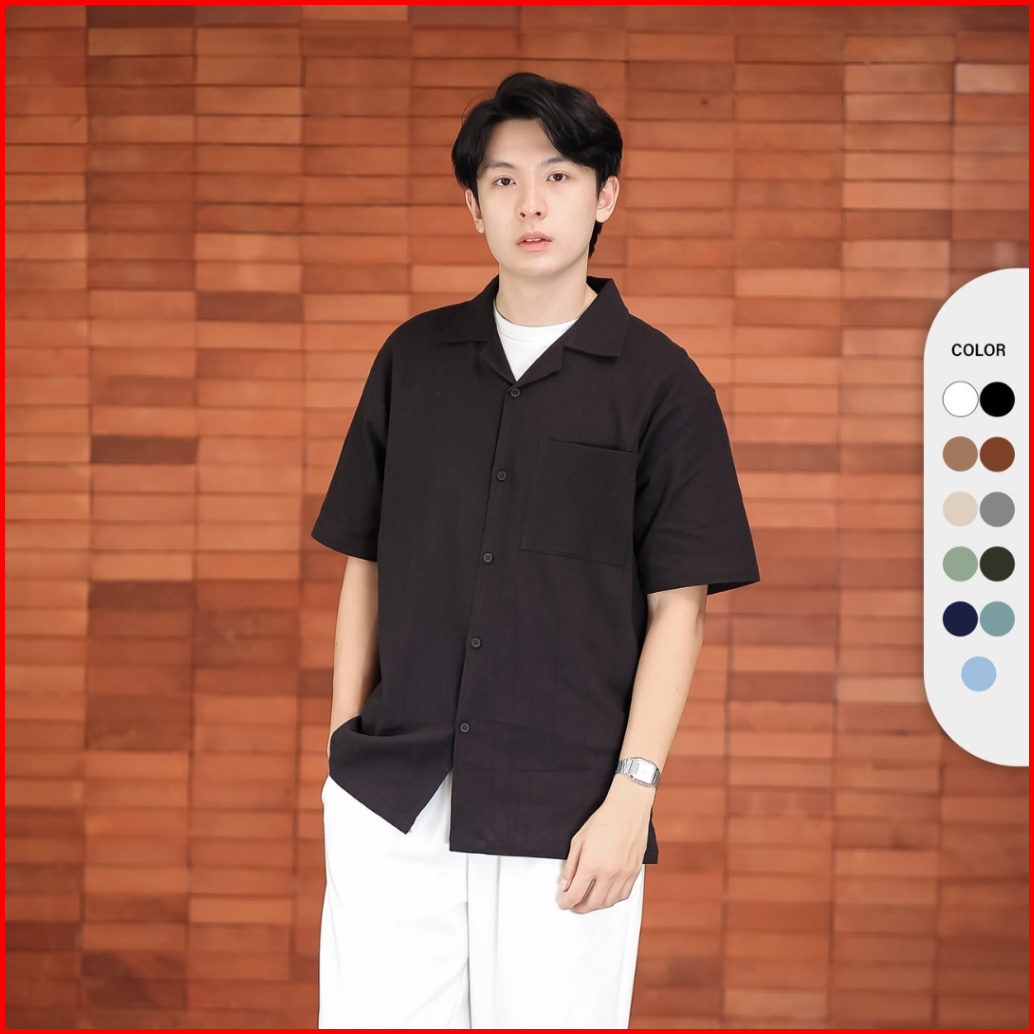Ancstr Kemeja Polos Linen Krinkle Oversized - Full Button
