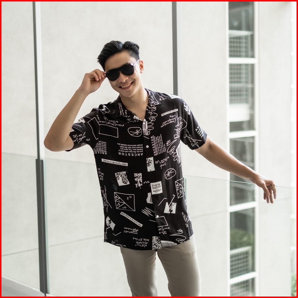 Ancstr Kemeja Printing Motif Abstrak - Mate Black