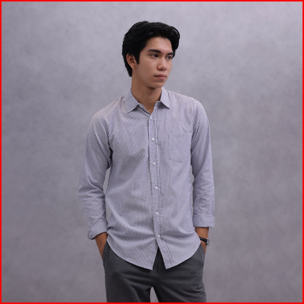 Wilmerstudios Kemeja Stripe Lengan Panjang Salur Sedang All Variant