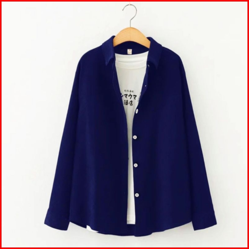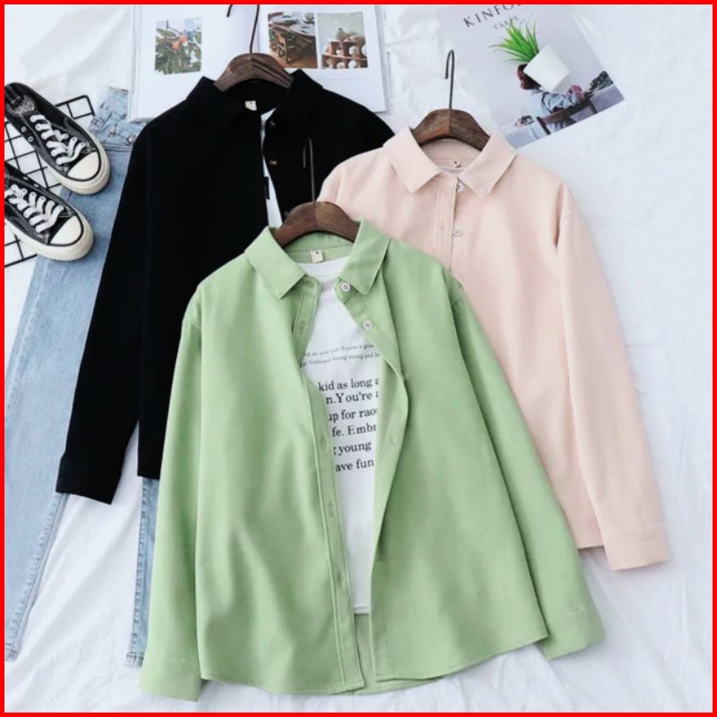 Kemeja Wanita Polos Kemeja Basic Lengan Panjang Wanita Katun Simple Hitam Putih Navy Pink Marun Sage Atasan Kasual Forma