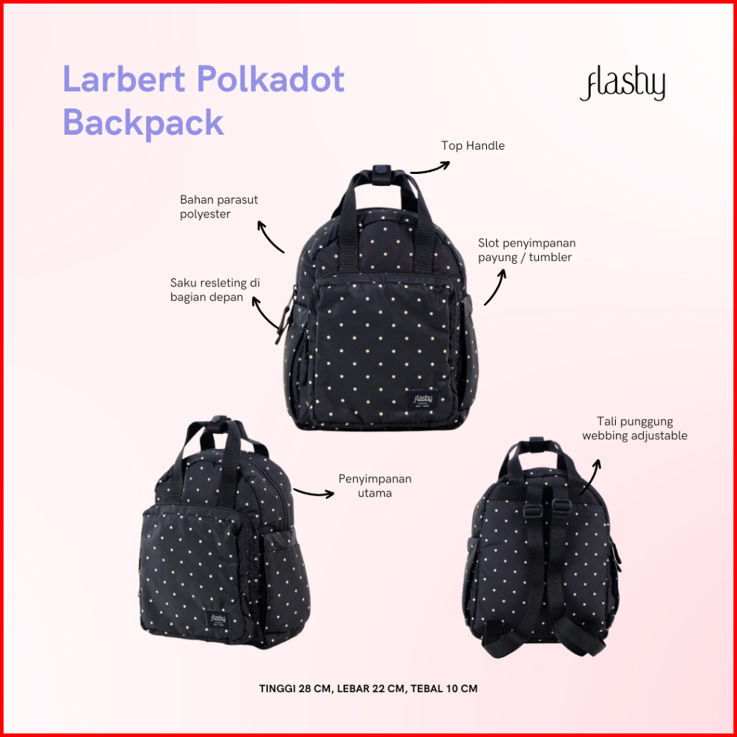 Flashy Tas Ransel Wanita Larbert Eight Polkadot Hitam