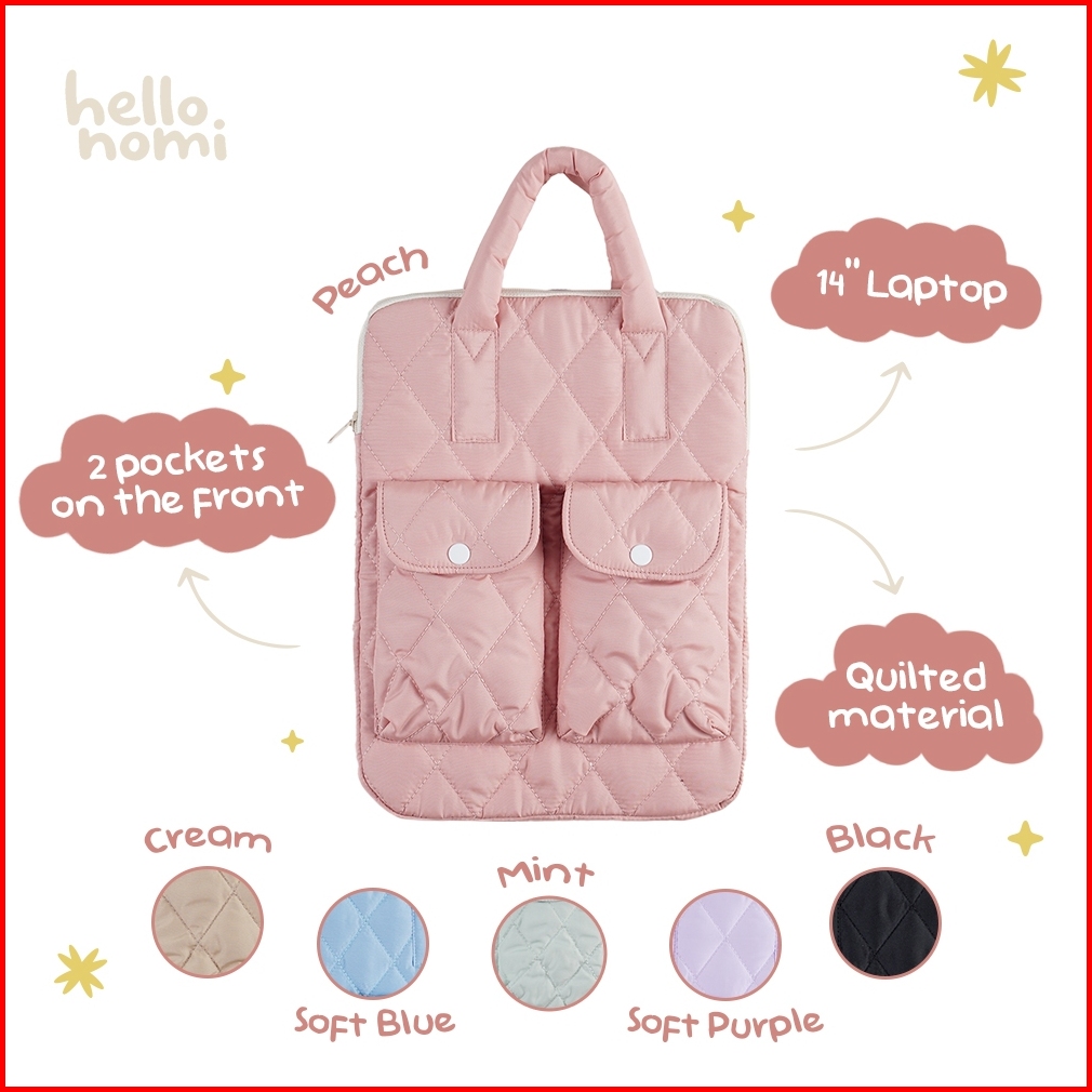Yumna Laptop Sleeve Puffy Diamond Quilted Bag With 2 Extra Pocket Tas Softcase Pelindung Laptop Dengan 2 Kantong Tambaha