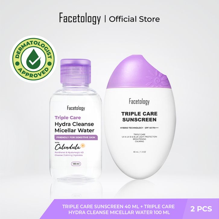 FACETOLOGY Official Storwe Skincare Wanita Glowing BPOM Sunscreen SPF 40 pa++ Micellar Water +Facial Wash+Peeling serum