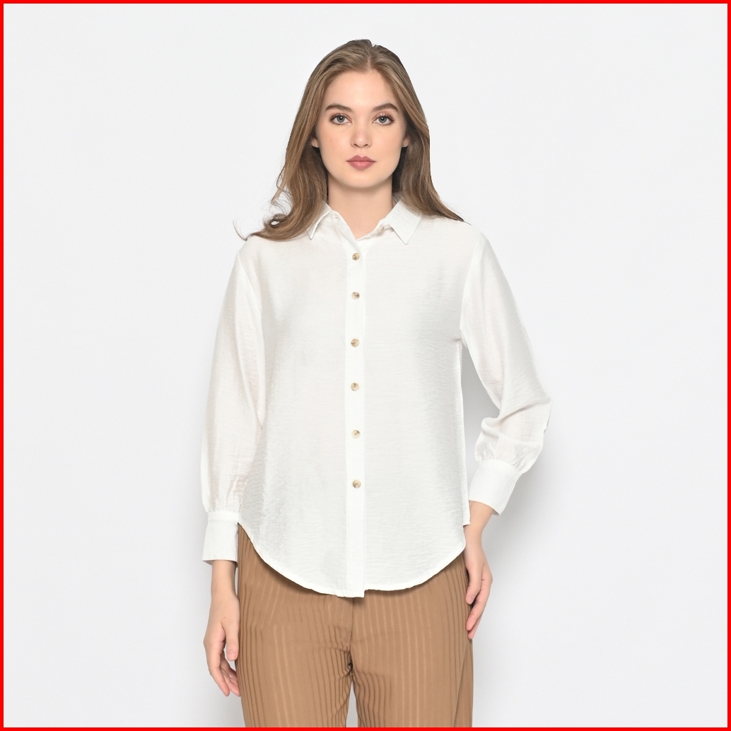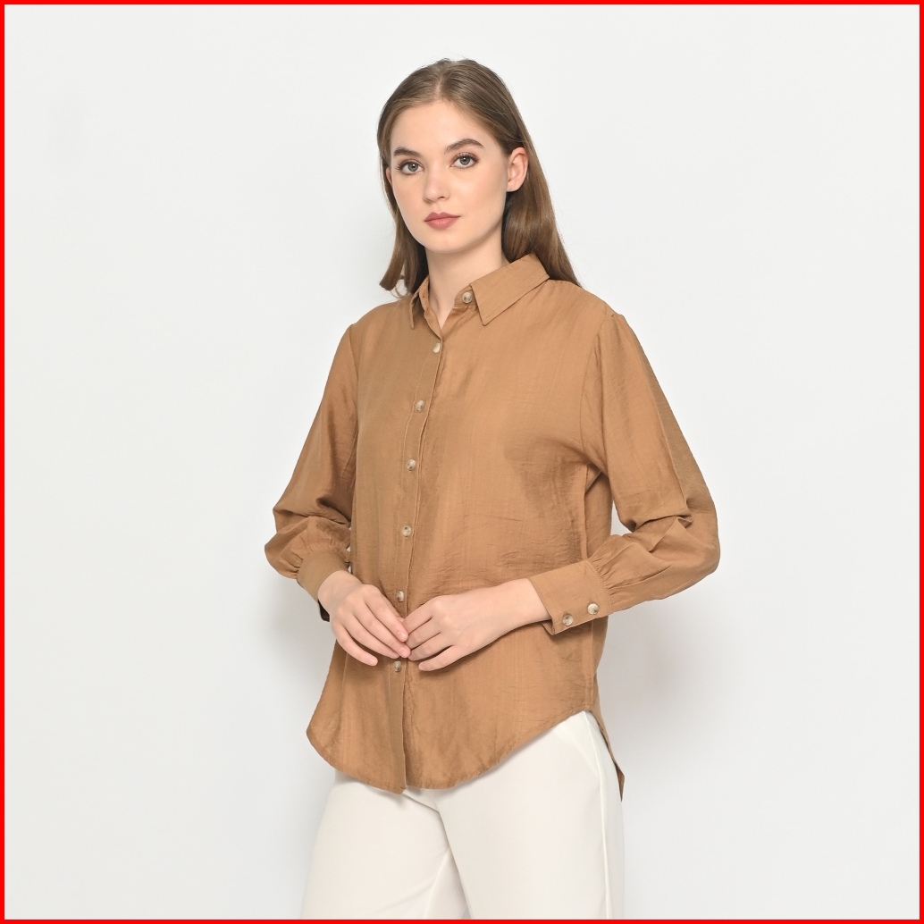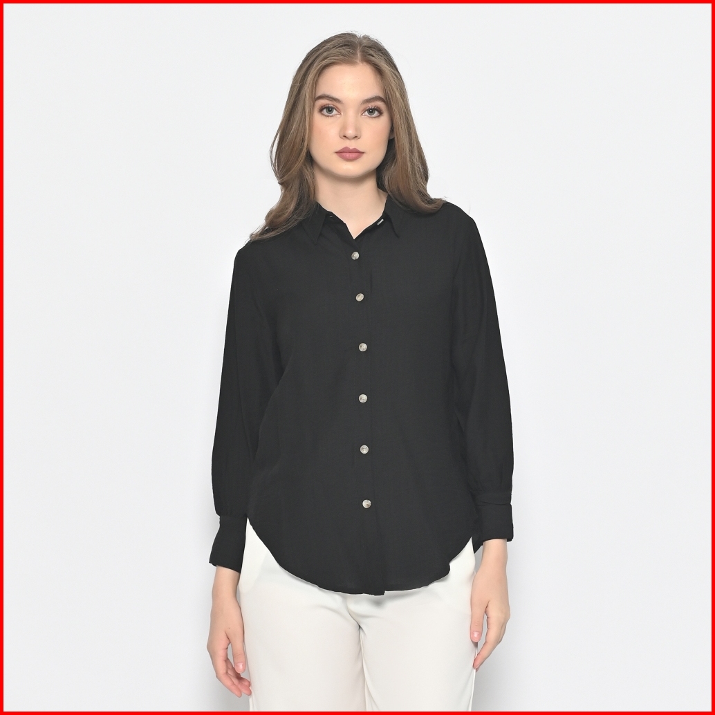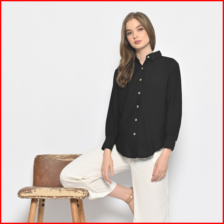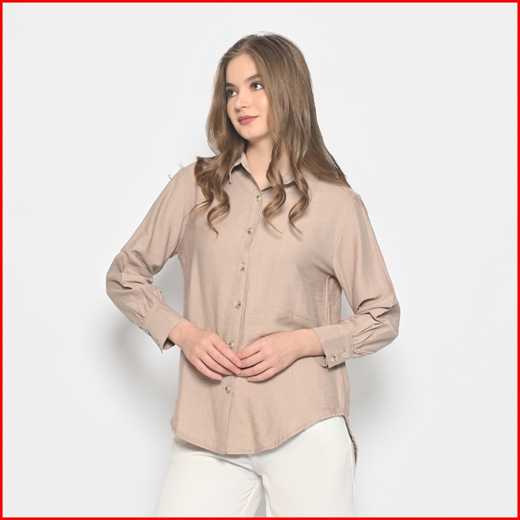 Queentin Kemeja Wanita Casual 0078 Linen Polo Polos Lengan Panjang