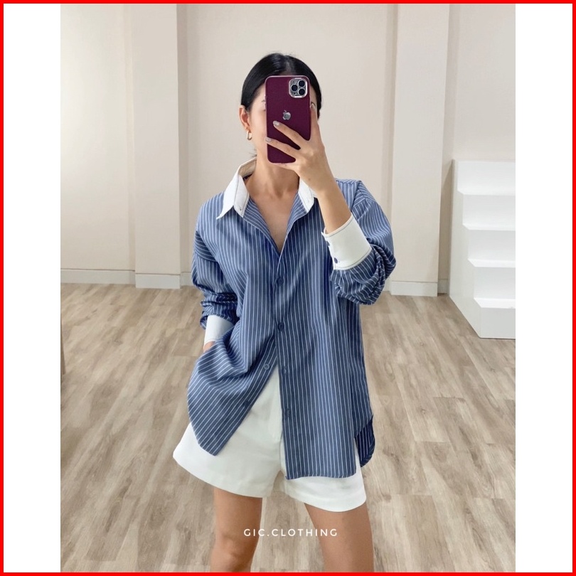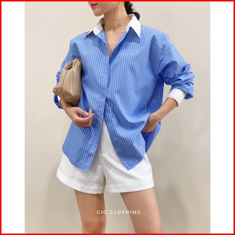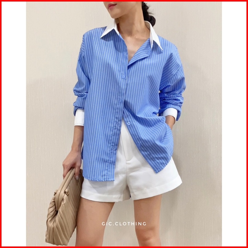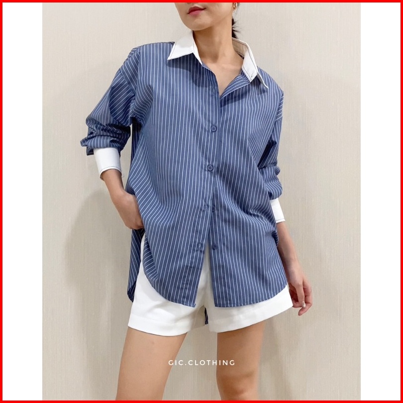 Gic Finley Stripes Shirt - Kemeja Kantor Wanita Motif Salur Lengan Panjang