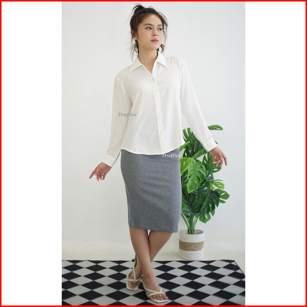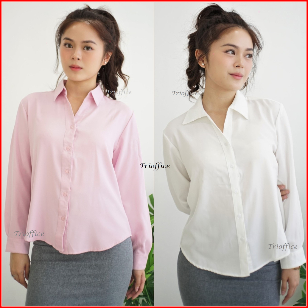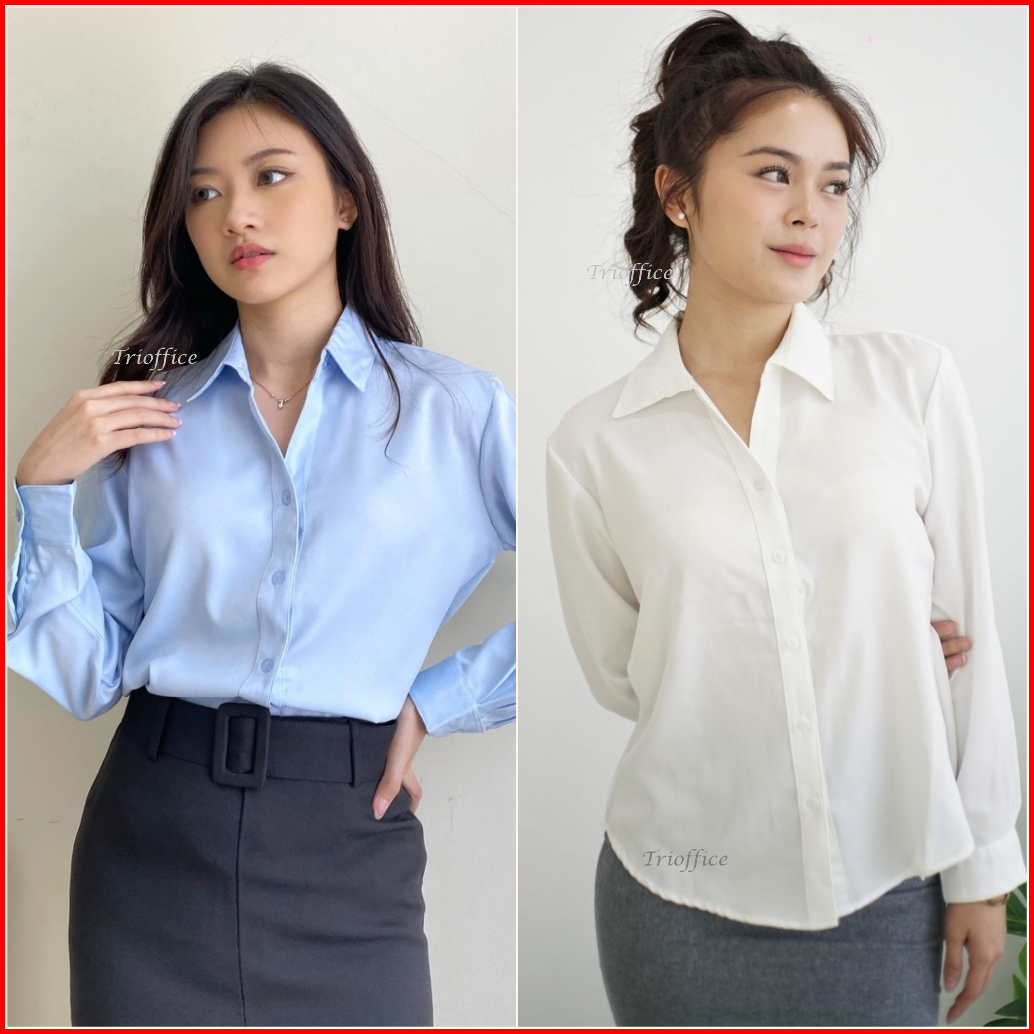 Kemeja Wanita Polos Kerah Terbuka V Neck Shakila Lengan Panjang