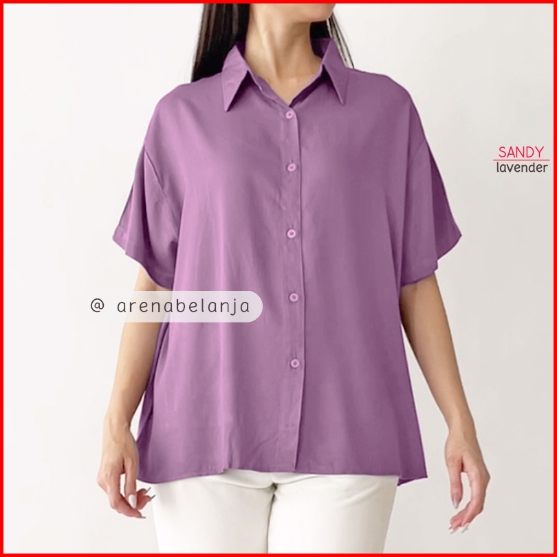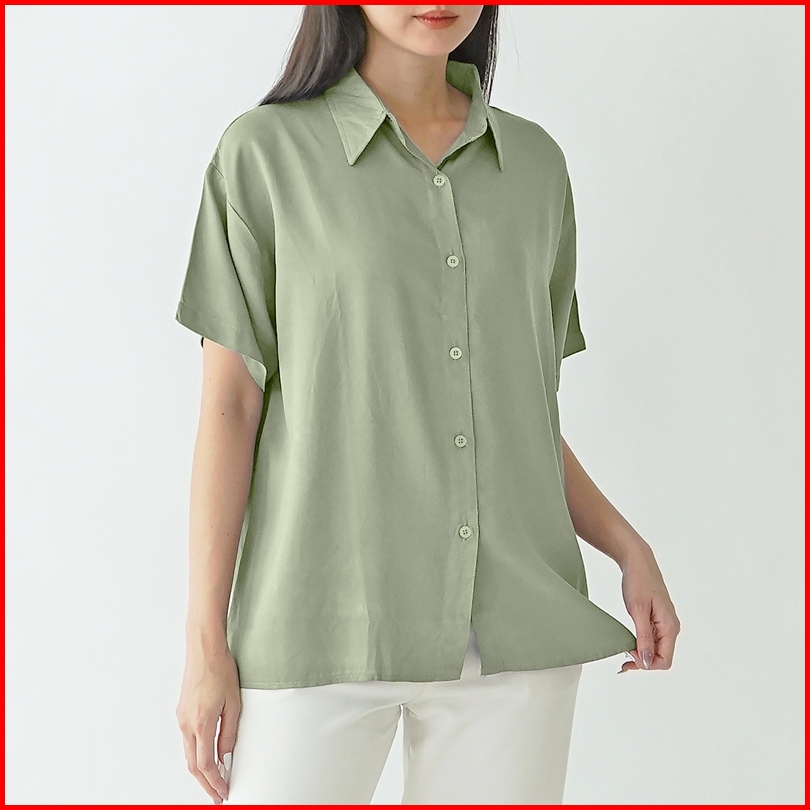 Arena - Kemeja Rayon Twill Oversize Wanita Atasan Kerja Polos Casual Shirt
