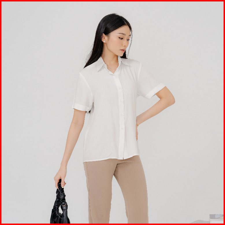 Sunflower Calline Shirt Atasan Kemeja Rayon Lengan Pendek Wanita