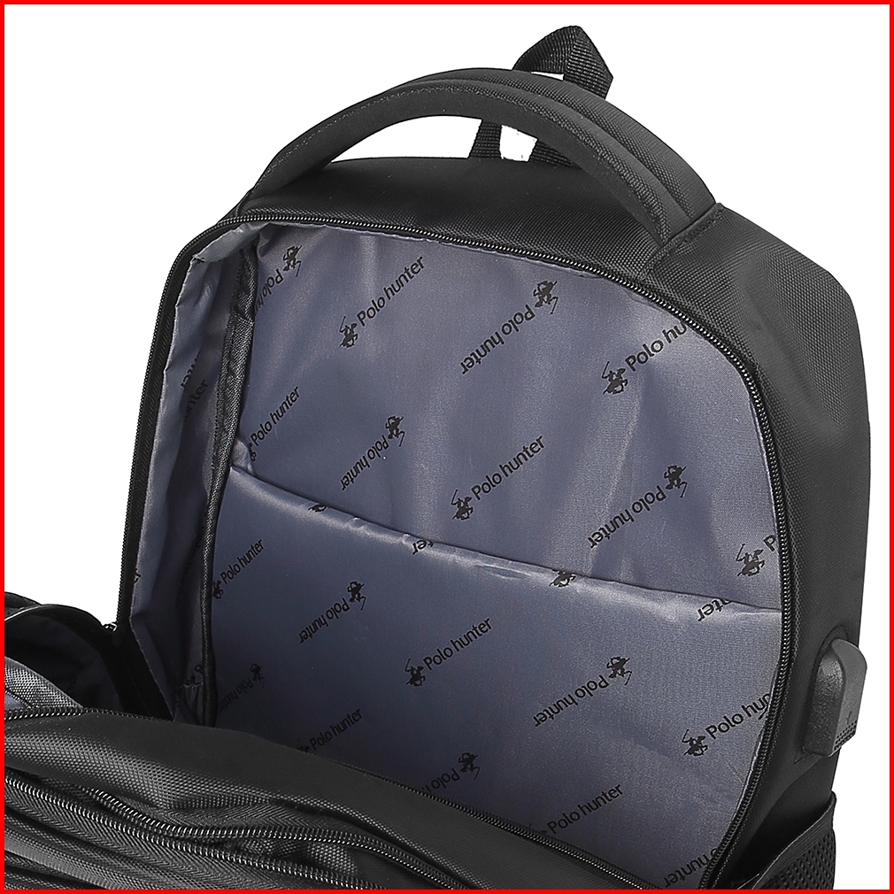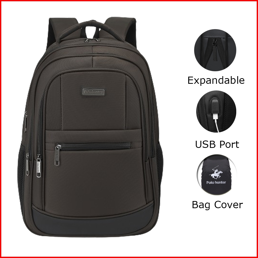 Tas Ransel Laptop Polo Hunter Expandable Baf - Backpack Daypack Usb Port Tas Pria Wanita Free Bag Cover
