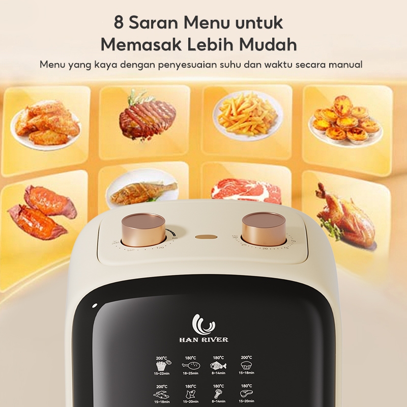Air Fryer HAN RIVER 4.2L – Wajan Anti Lengket, Bebas Minyak, Low Watt 800W Multifungsi