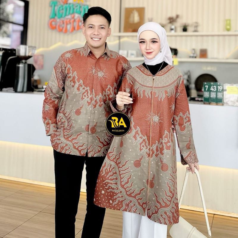Baju Batik Couple Pria Wanita Batik Tunik Couple Modern Set Pakaian Couple Kemeja Batik Pria Panjang Baju Bati Couple Tunik batik Couple