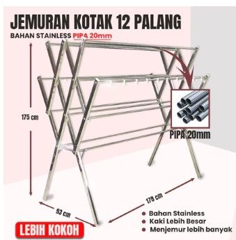 [Mall] Jemuran Baju Stainless Jumbo Dinding Gantung Jumbo Palang 9 11 12 Termurah Gratis Ongkir