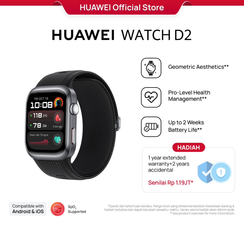 [Mall] Smartwatch HUAWEI WATCH D2 | 24-hour Ambulatory Blood Pressure Monitoring|Light and Slim Design|All-Round Health