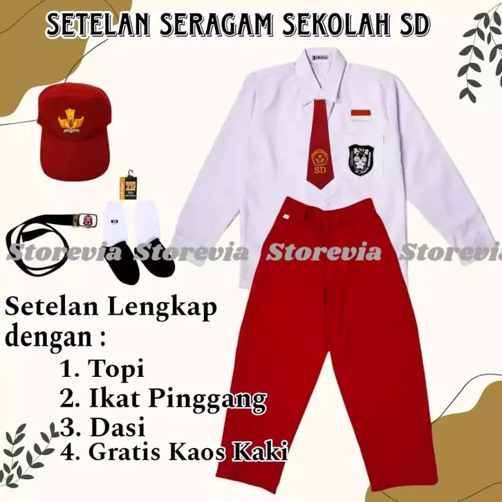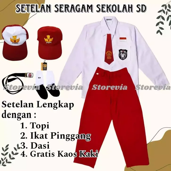 Storevia Setelan Super Lengkap Seragam Sekolah SD Merah Putih Lengan Panjang Laki-laki Kelas 1-6 SD