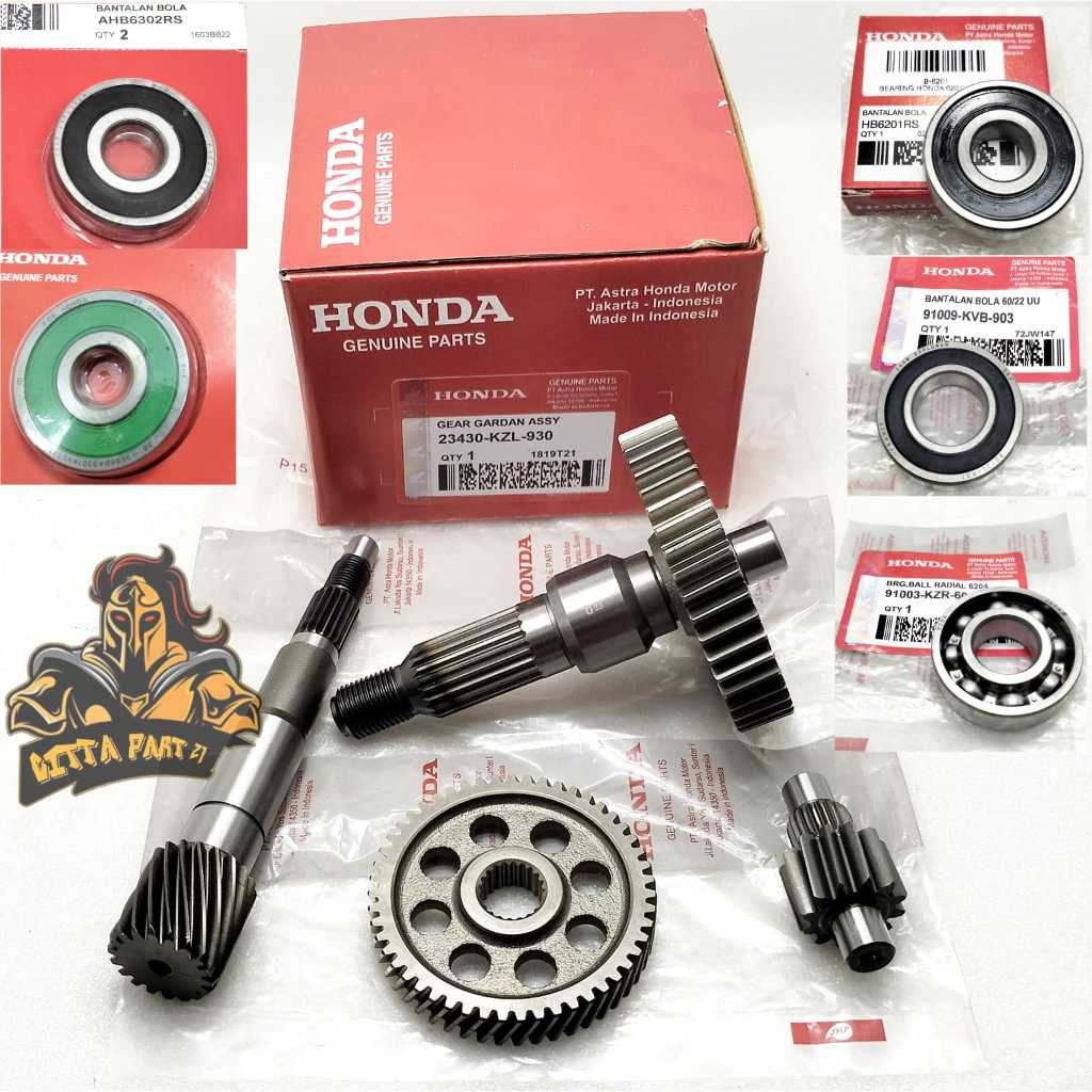 GIGI GEAR RASIO SET KOMPLIT PLUS BEARING 5 BIJI ASLI ORIGINAL HONDA AHM KZL PRESISI DAN DIJAMIN AWET GIR GARDAN BEAT FI