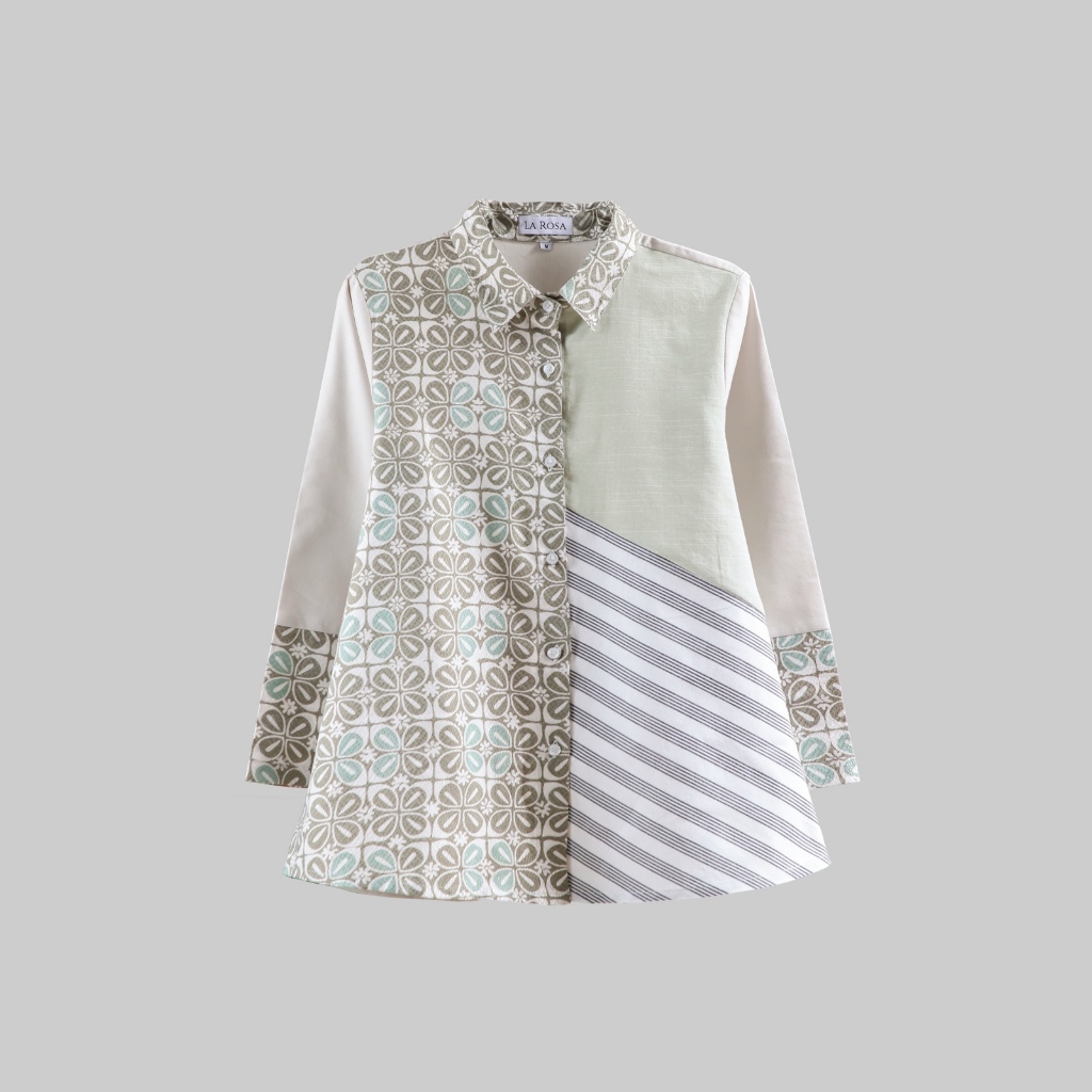 Kemeja Batik Wanita Puspa Soft Grey / Batik Dobby / Blouse Batik Wanita / Batik Kantor