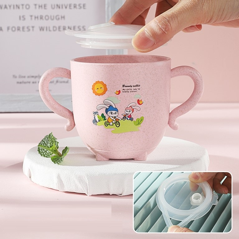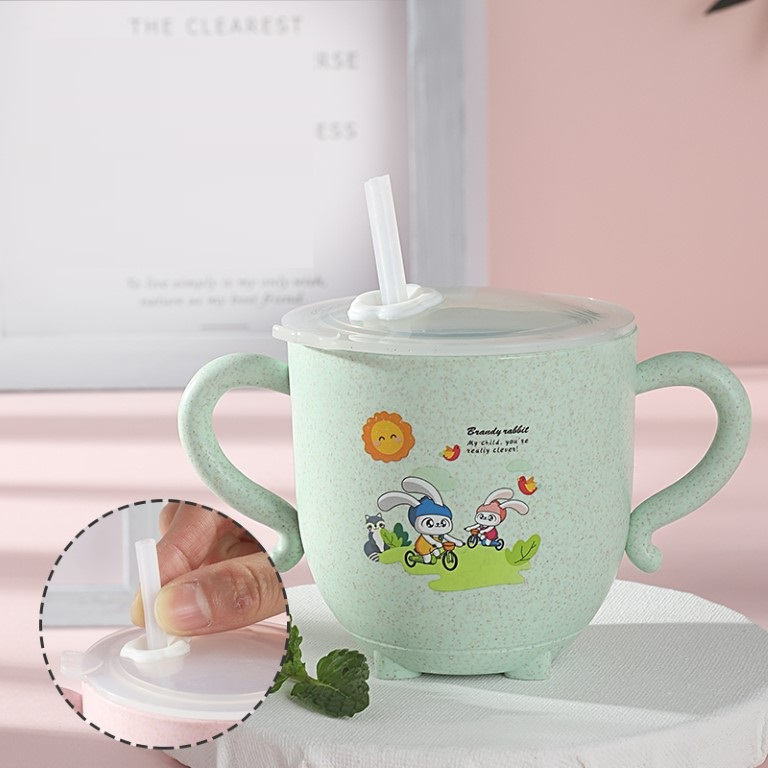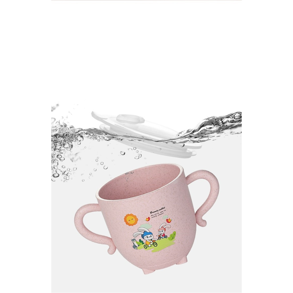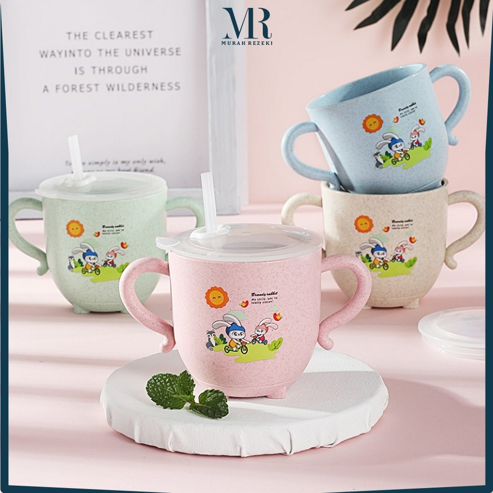 Gelas Jerami Mug Wheat Straw Karakter Kartun Ada Pegangan / Baby Cup Cangkir Anak Dengan Penutup Praktis MR C381