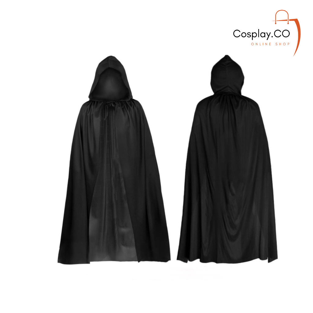 Cosplay Jubah Hitam Polos Plus Hoodie Kostum Halloween Pria Dan Wanita