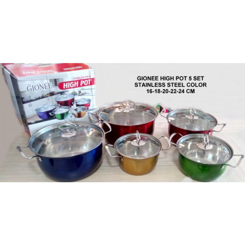 Panci Set 5Pcs Panci Steamer susun tutup kaca Panci Set Stainless Tebal isi 5 Panci Set High Pot Warna Panci Steamer