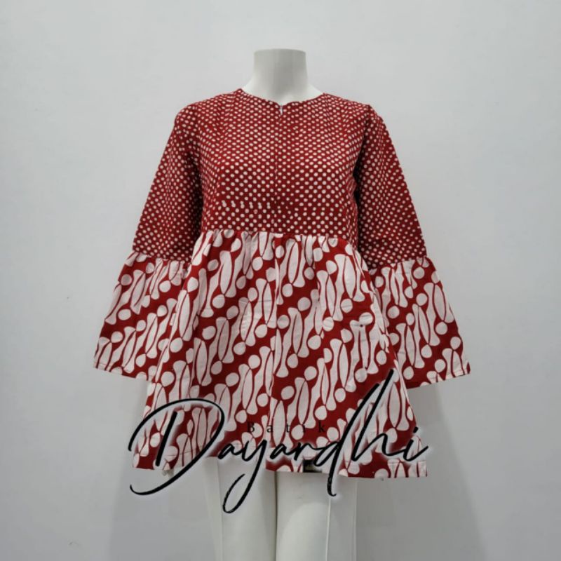 Dayardhi Batik Kerja Wanita Merah Putih Blus Batik Kerja Kekinian