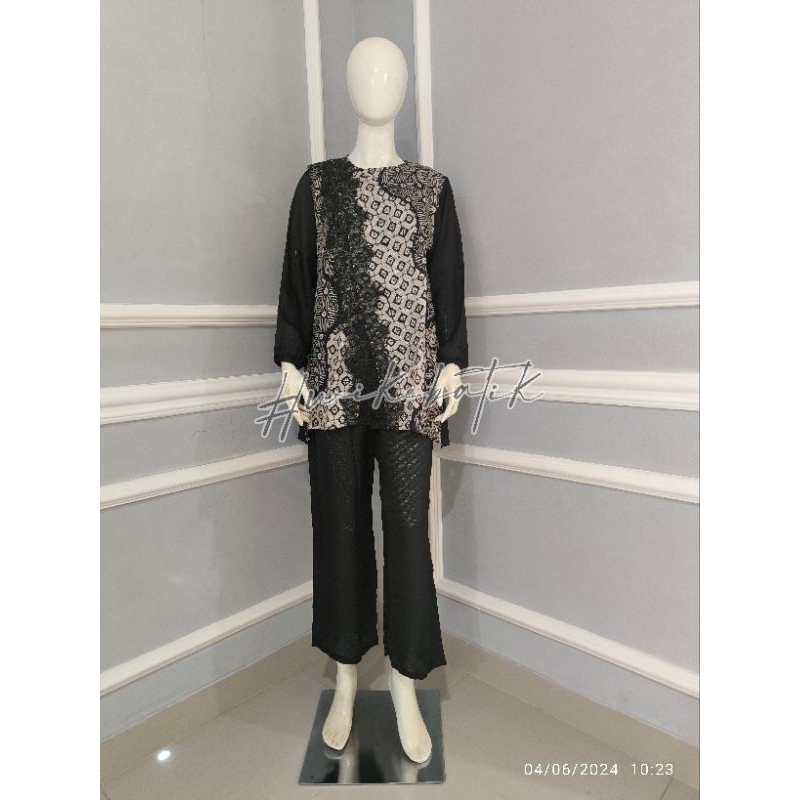 WIKE BATIK | SET ARUMI BLUS KERJA KANTOR BATIK CAP RENDA LACE | BATIK TRUSMI