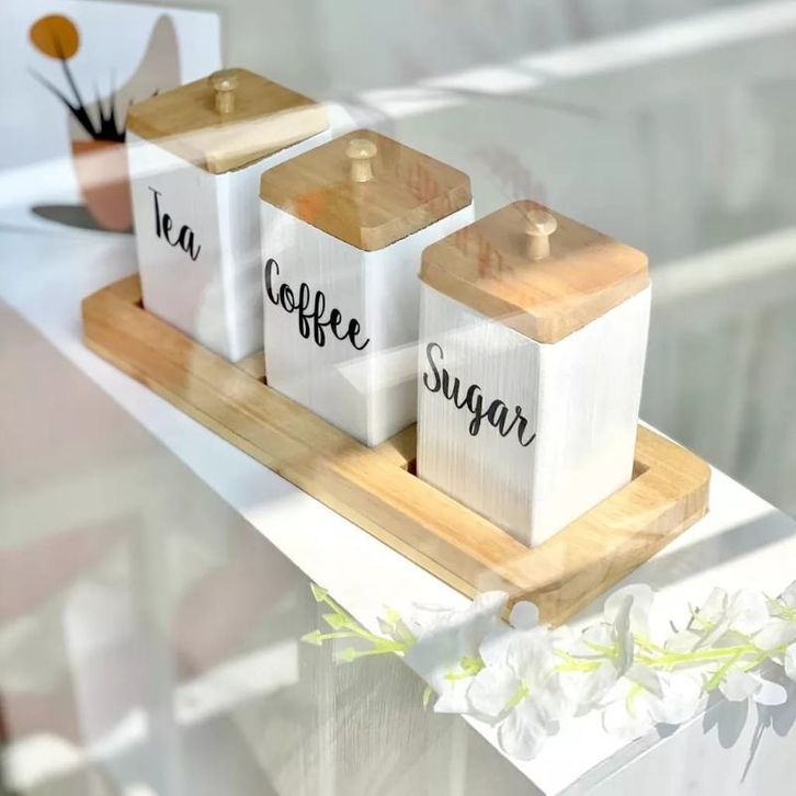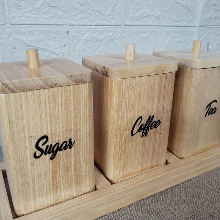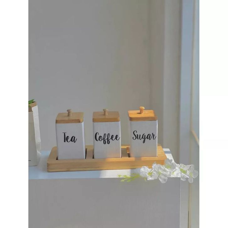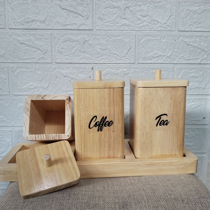 Toples Bumbu Dapur Set Toples Tempat Kopi Gula Teh Garam Set Kayu