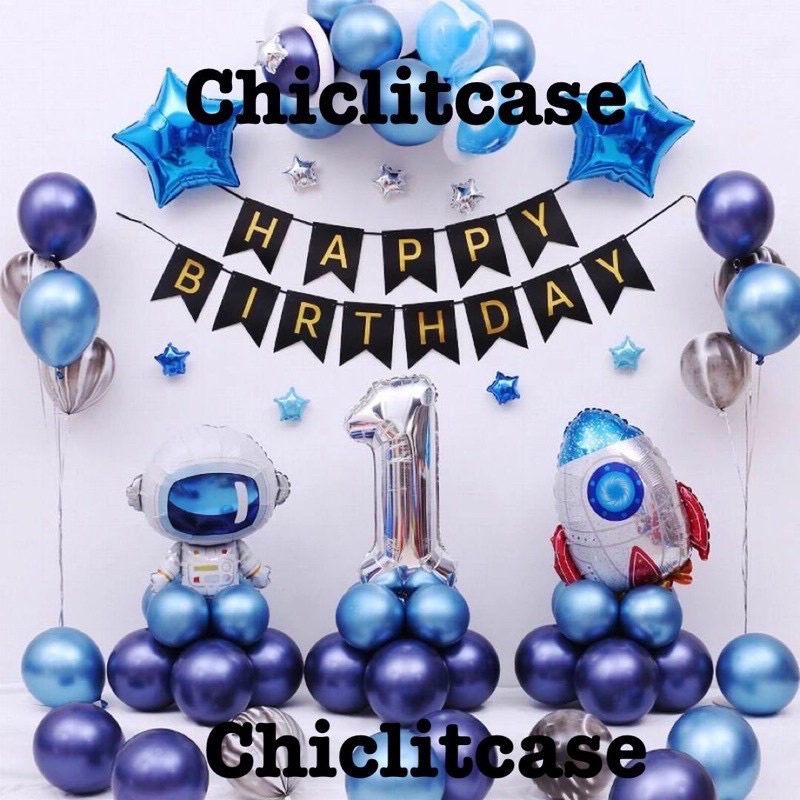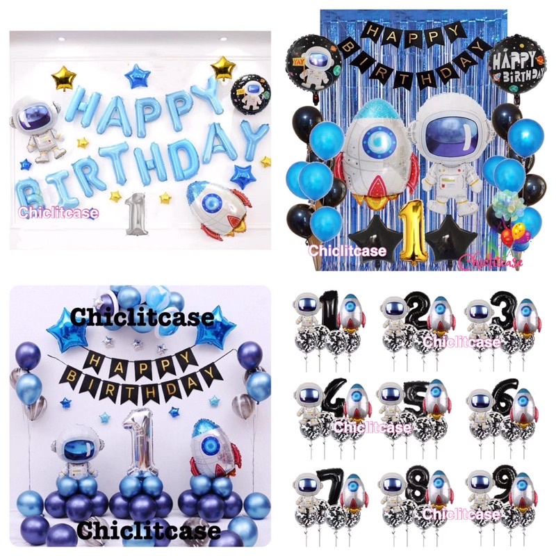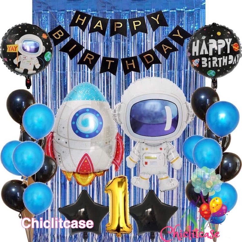 Set paket balon dekorasi ulang tahun anak tema astronot galaxy simple