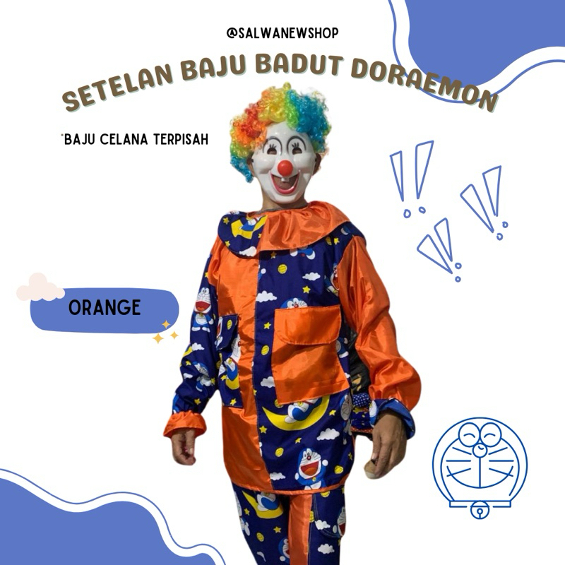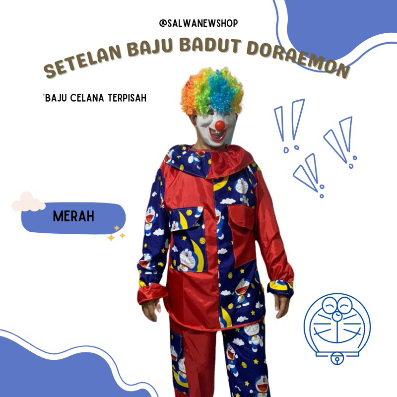 Setelan Badut Baju Celana Terpisah Doraemon Topeng Wig