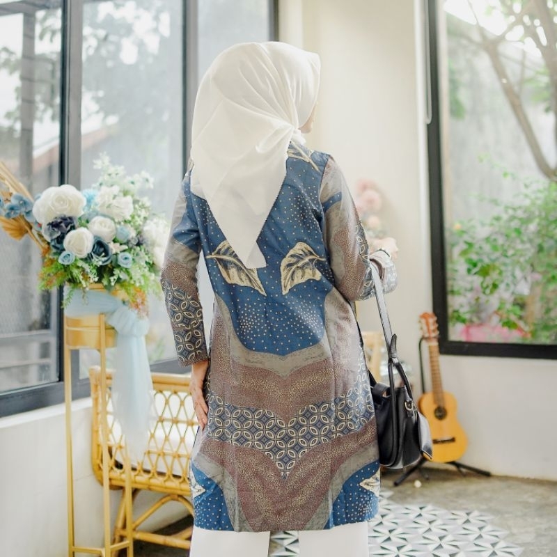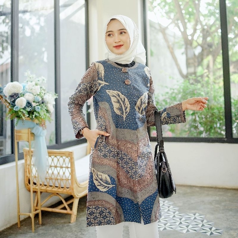Tunik Batik Wanita Full Trikot Pakaian Kerja Wanita Premium Motif Batik