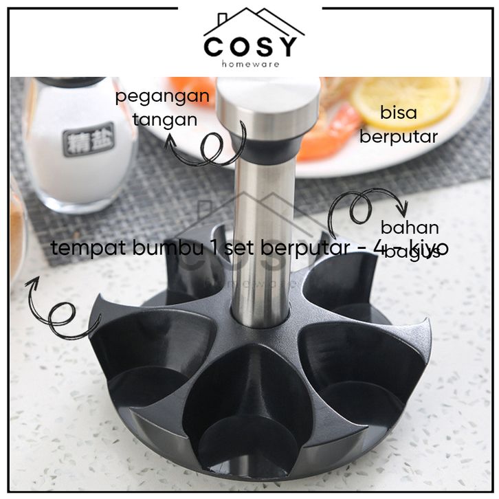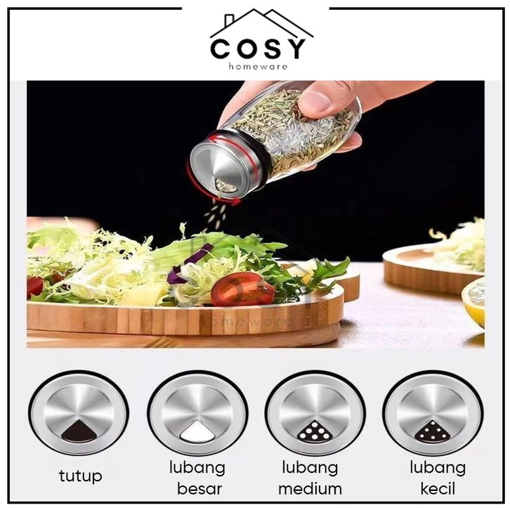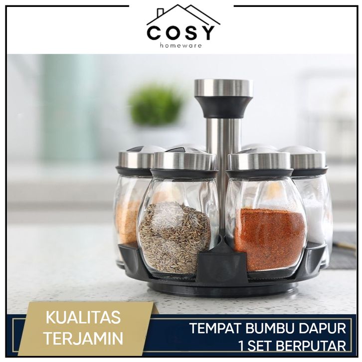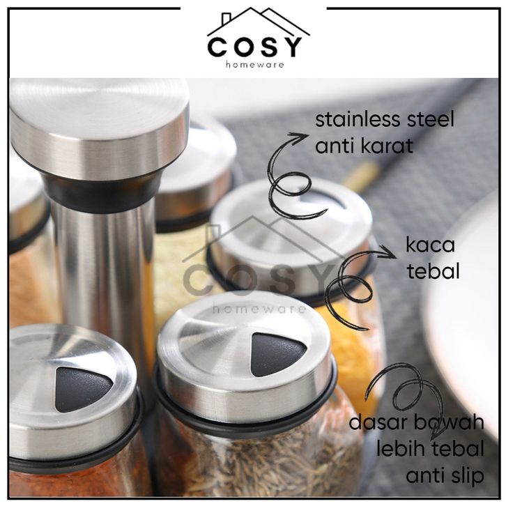 Tempat Bumbu Putar Cosy Botol Kaca Tempat Bumbu 1 Set Bisa Diputar dengan Tutup Stainless Steel