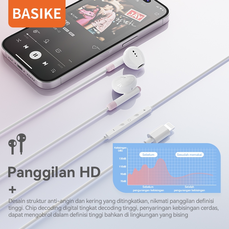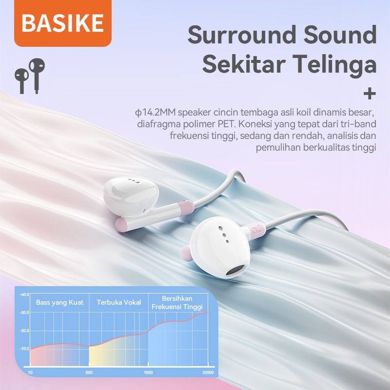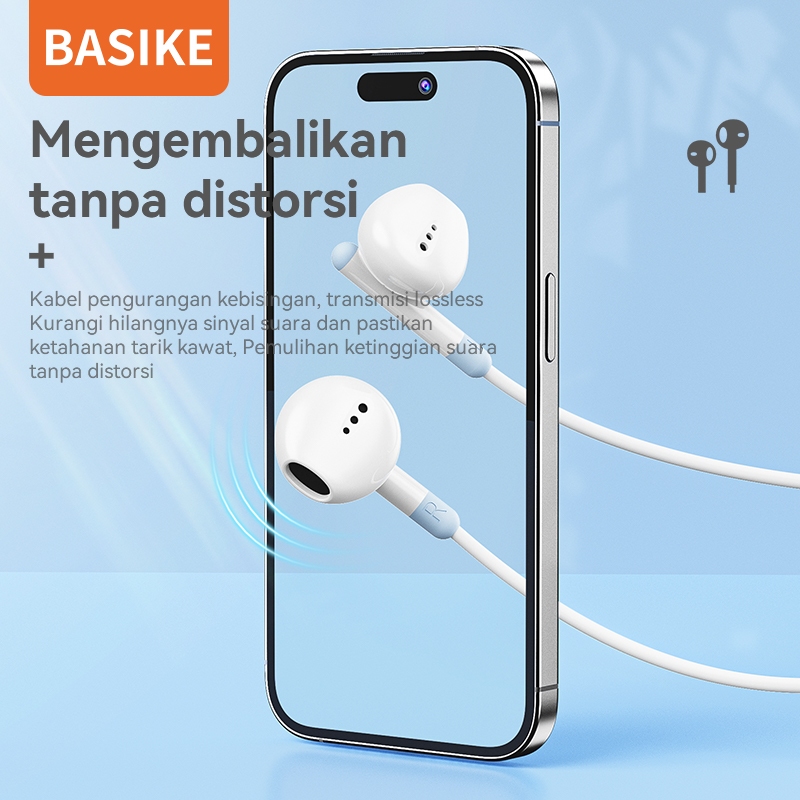 Basike Headset Kabel 3.5 mm Earphone Gaming Bass Musik In Ear for OP00 VIV00 Xiaomi Android Asli