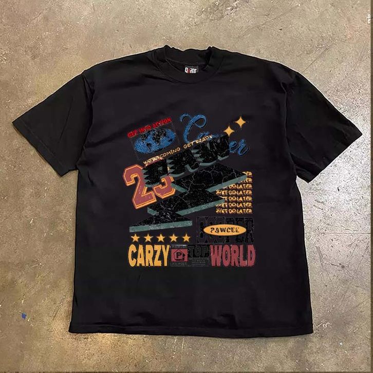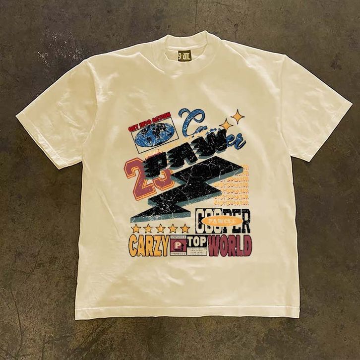 JJ.STORE Versi petir jalanan retro Amerika yang trendi dengan cetakan merek baju atasan wanita terbaru kekinian kaos pr