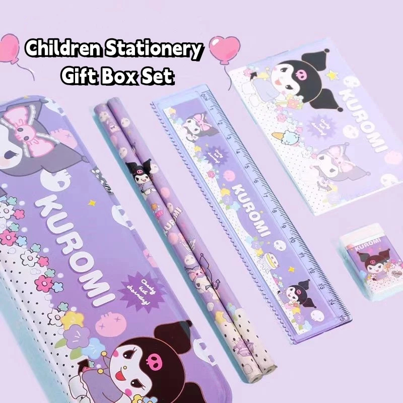 FIVEVOO Alat Tulis Anak Tk / Kotak Pensil Anak Set / Tempat Pensil Anak Perempuan Sanrio / Kotak Pensil Kuromi Squi/ Had