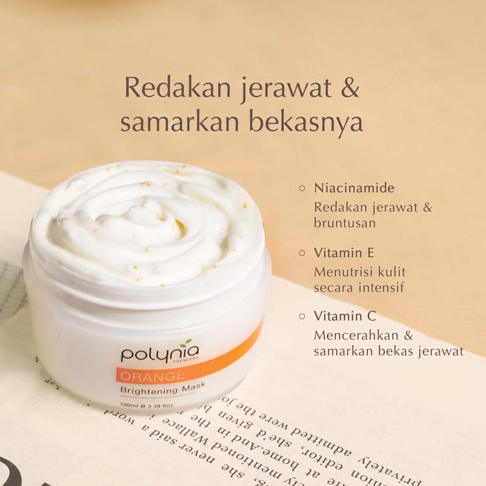 POLYNIA | Orange Brightening Mask 100ml | Masker Wajah Mencerahkan | Pudarkan Bekas Jerawat | Cegah Bopeng | Vitamin C