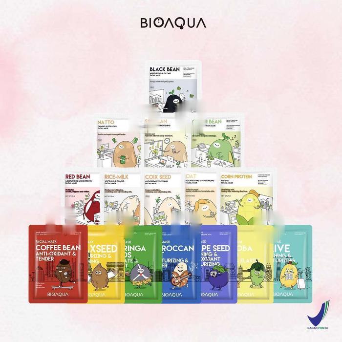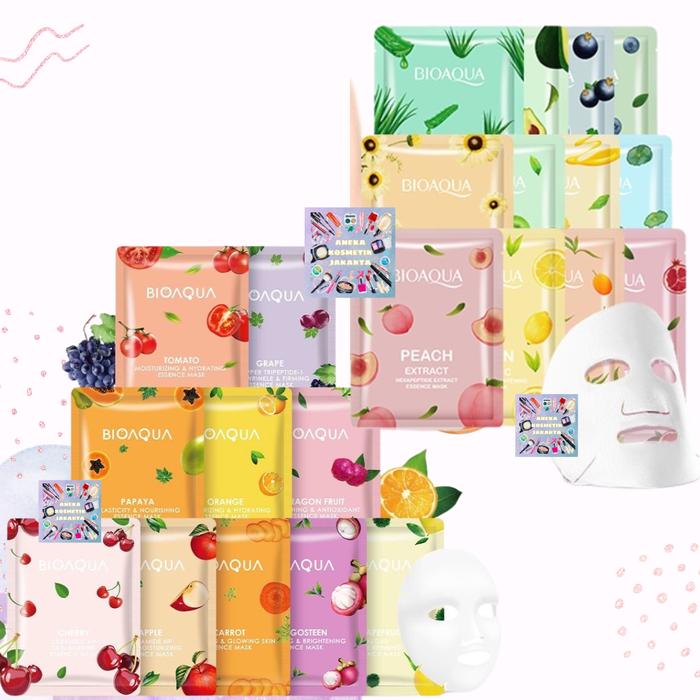 Paket Bioaqua Sheet Mask Isi 50pc - Masker Wajah Berkualitas Tinggi Bunga Kering Mencerahkan Vitamin Melembutkan Kusam