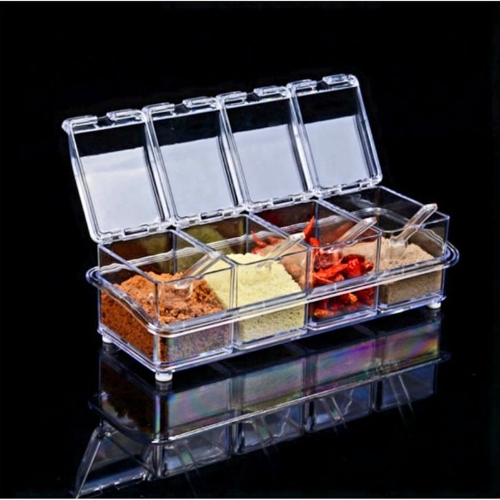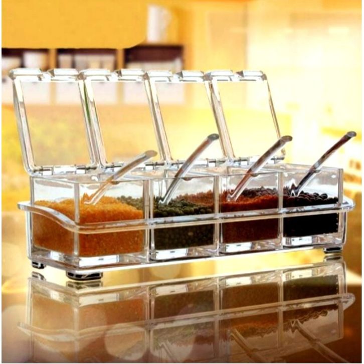 TEMPAT BUMBU DAPUR SET KOTAK BUMBU WADAH BUMBU ANEKA 4 PCS TRANSPARAN TB002