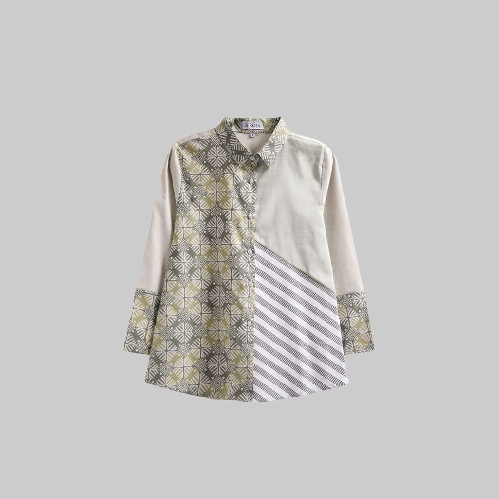 Kemeja Batik Wanita Puspa Soft Grey / Batik Dobby / Blouse Batik Wanita / Batik Kantor