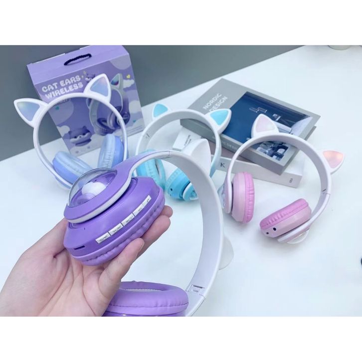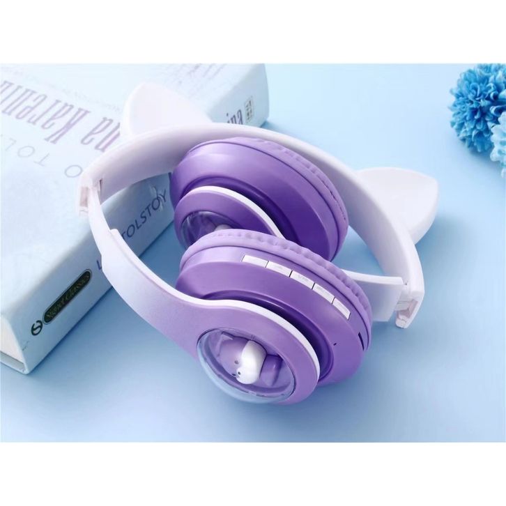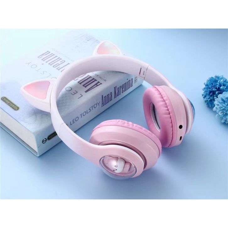 Headset Gaming Bluetooth 5.3 Space Capsule Cat Ears RGB Wireless Earphone Noise Canceling Headphone