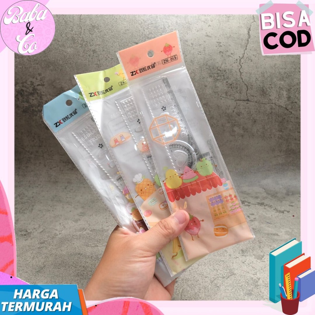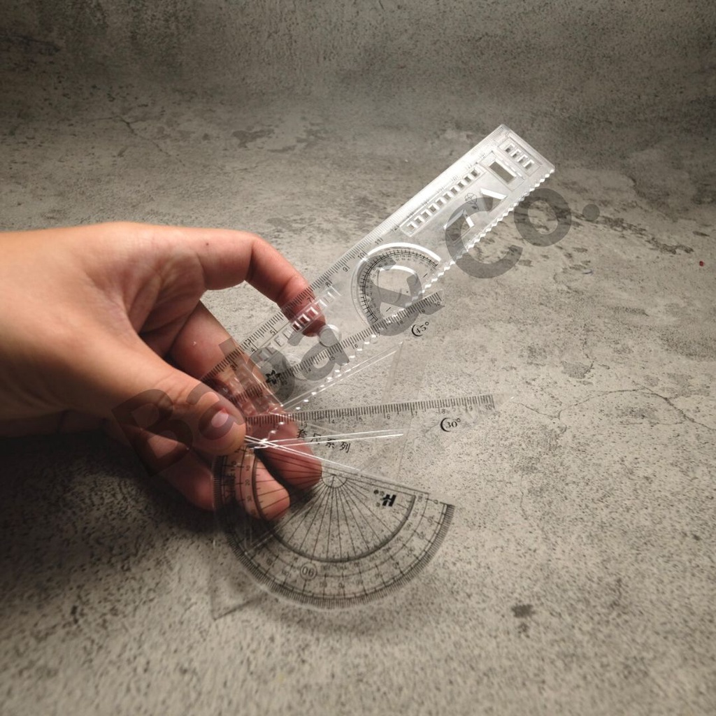 PENGGARIS 4 IN 1 PAKET ALAT TULIS MURAH MISTAR PLASTIK PENGGARIS SEGITIGA PERLENGKAPAN SEKOLAH KANTOR ATK MURAH BISA