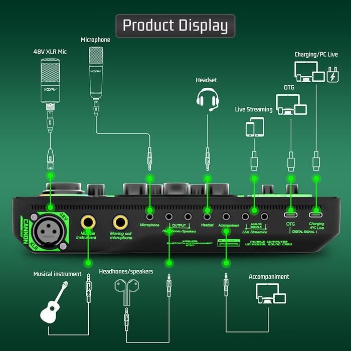 Soundcard KOORFLY KF03 RGB Efek 48V Recording Live Mixer - 12 Efek RGB/ 4 DIY Efek Suara/ Untuk Alat