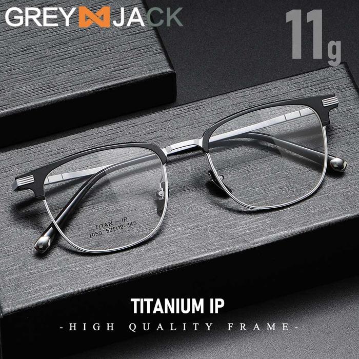 Grey Jack Frame Kacamata Kotak Titanium Model Simple Style Bisnis Fashionable Bisa Minus Antiradiasi Bluecromic 7050