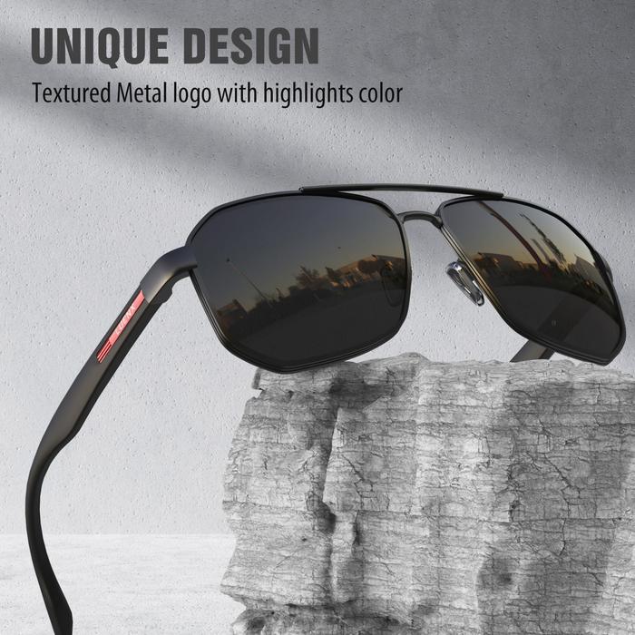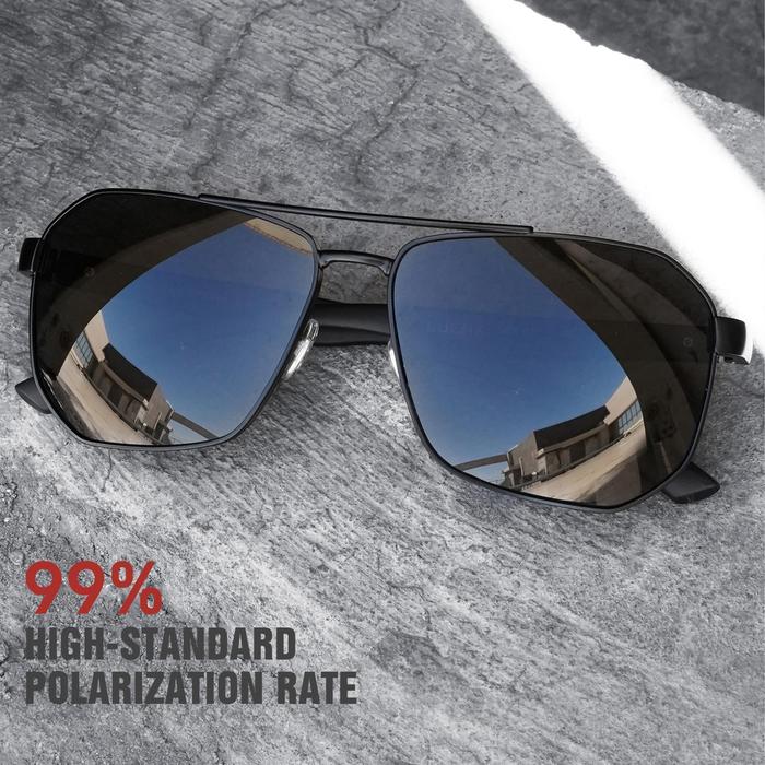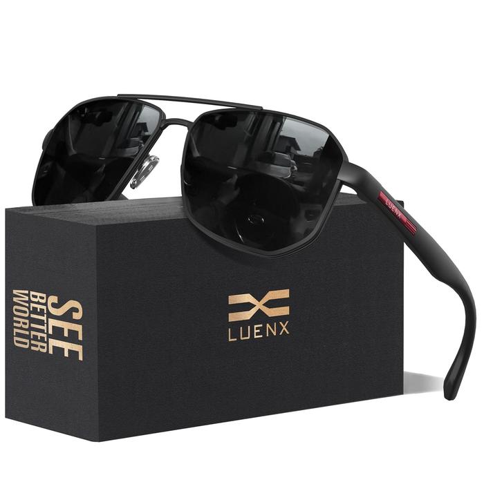 LUENX Kacamata Aviator Sunglasses for Men Square Polarized Polygon Lens